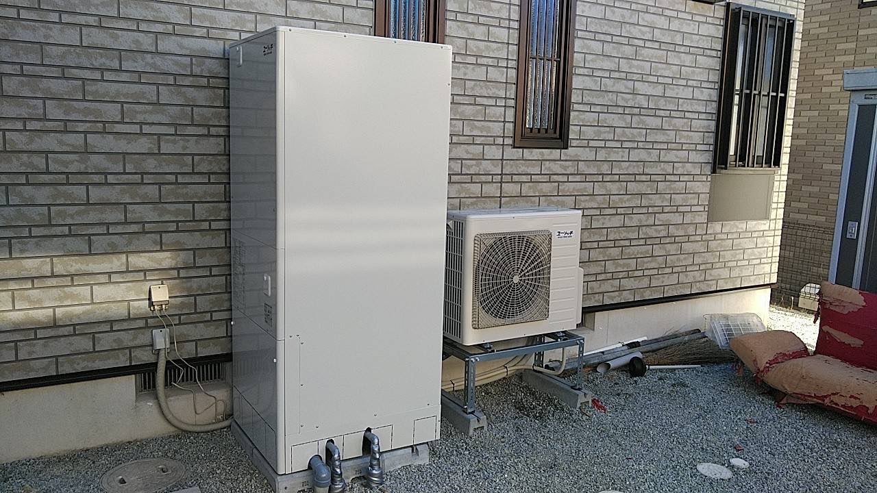 1.一般戸建て新築工事に伴うコロナエコキュート新規取付工事。