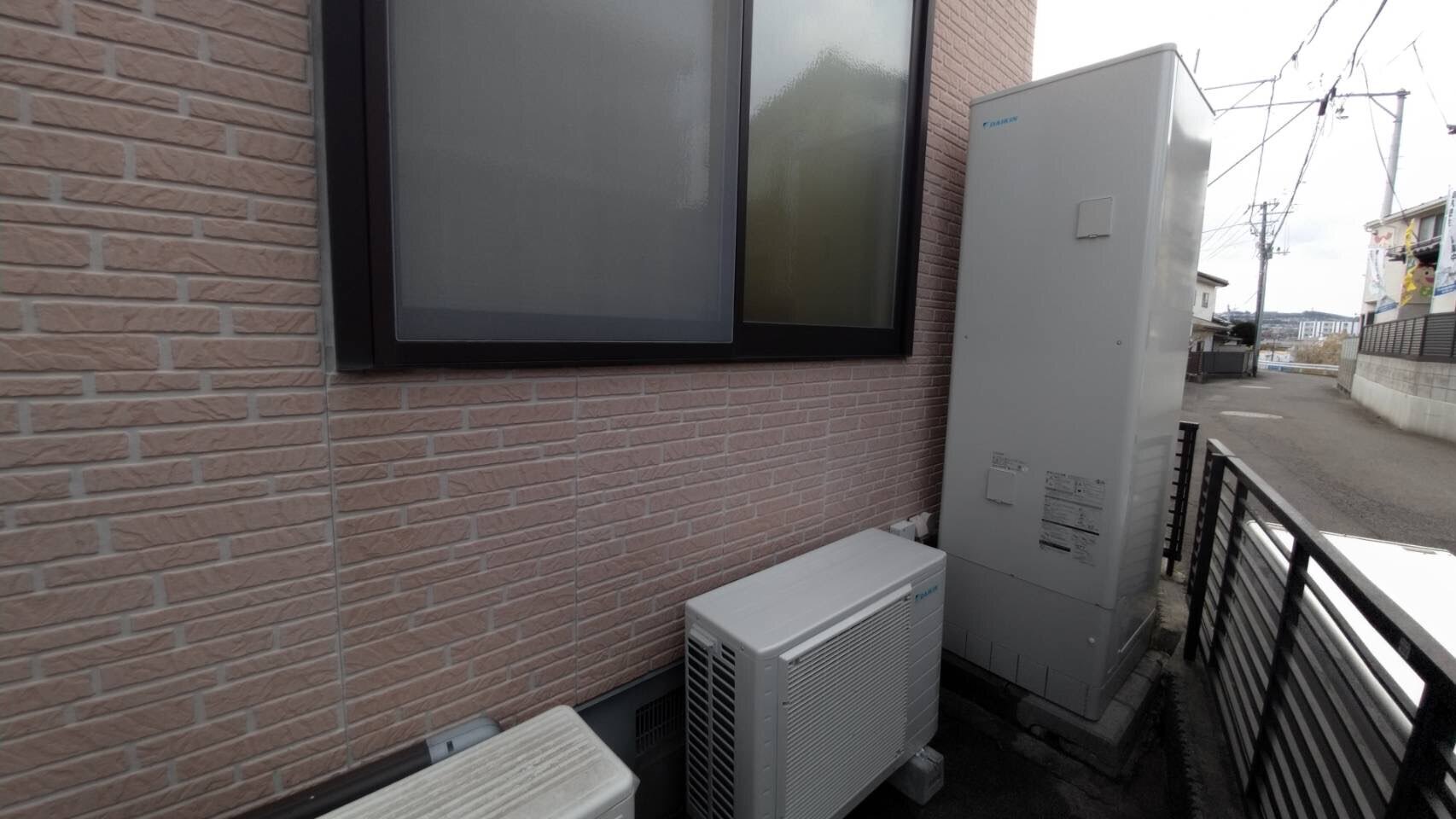 新規エコキュートタンク・ヒートポンプ搬入据付・配管工 事