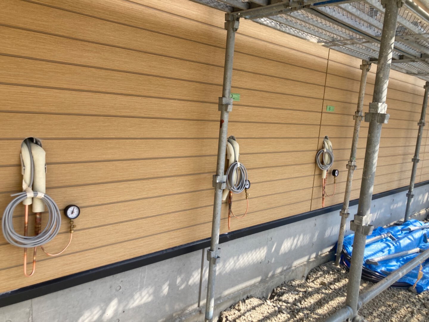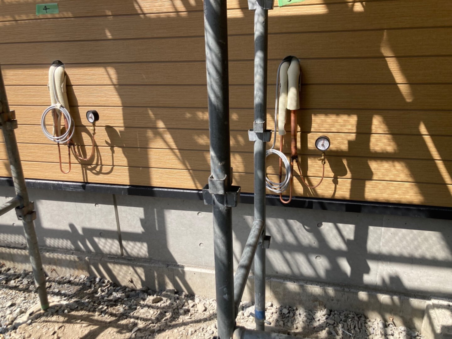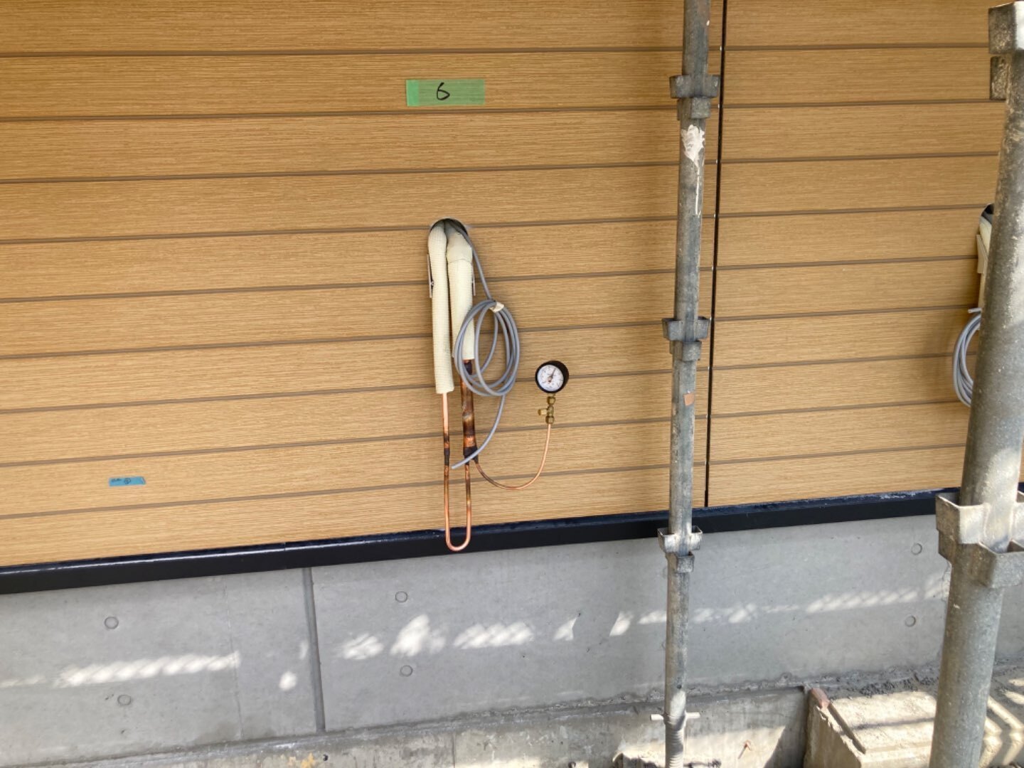 山形県米沢市 店舗新築工事現場様 新規空調設備冷媒配管工事