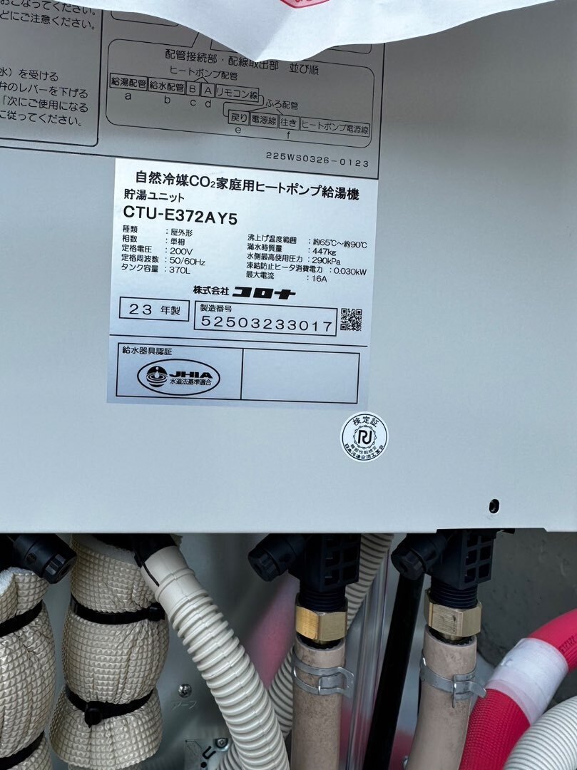 宮城県遠田郡美里町 一般戸建新築現場様 新規コロナエコキュート取付工事