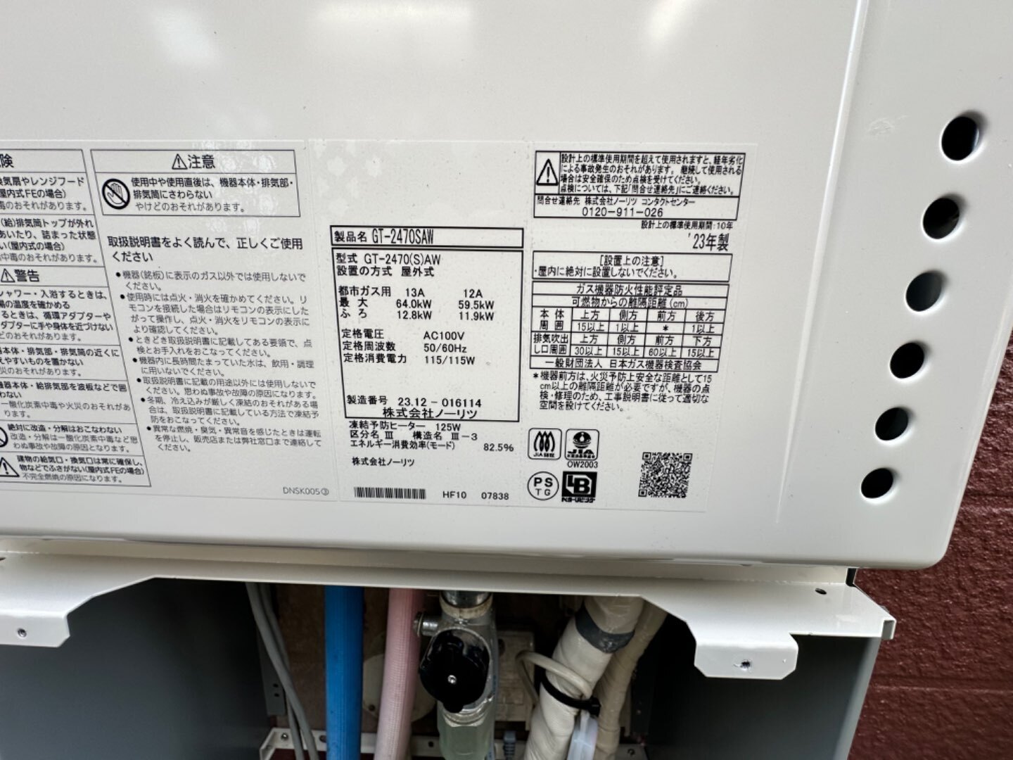 1.既存ノーリツガスふろ給湯器故障の為交換。