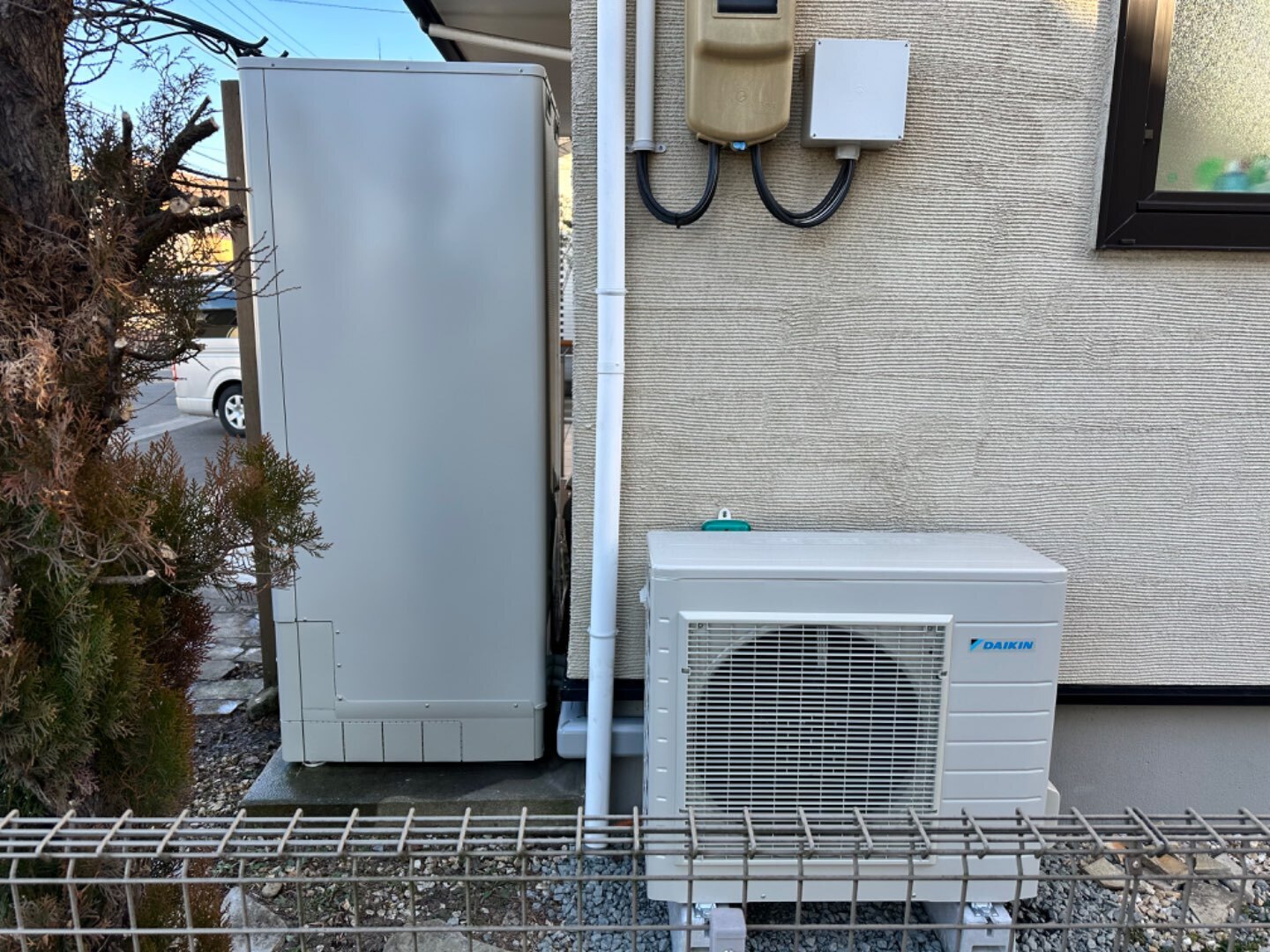 新規エコキュートタンク・ヒートポンプ搬入据付・HP配管 工事【材工共】