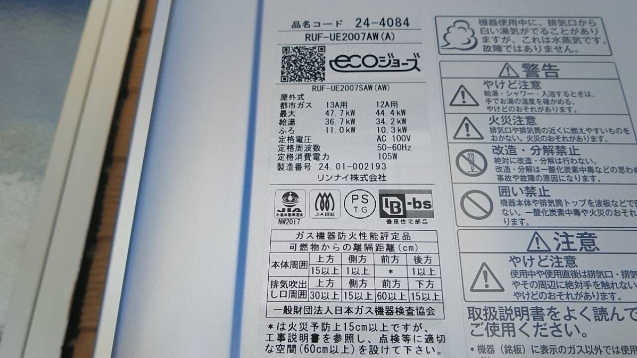 宮城県仙台市青葉区 一般戸建てお客様 リンナイウルトラファインバブル ガスふろ給湯器取付工事