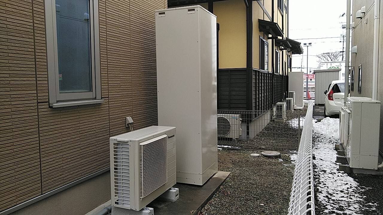 新規エコキュートタンク・ヒートポンプ搬入据付・HP配管 工事【材工共】