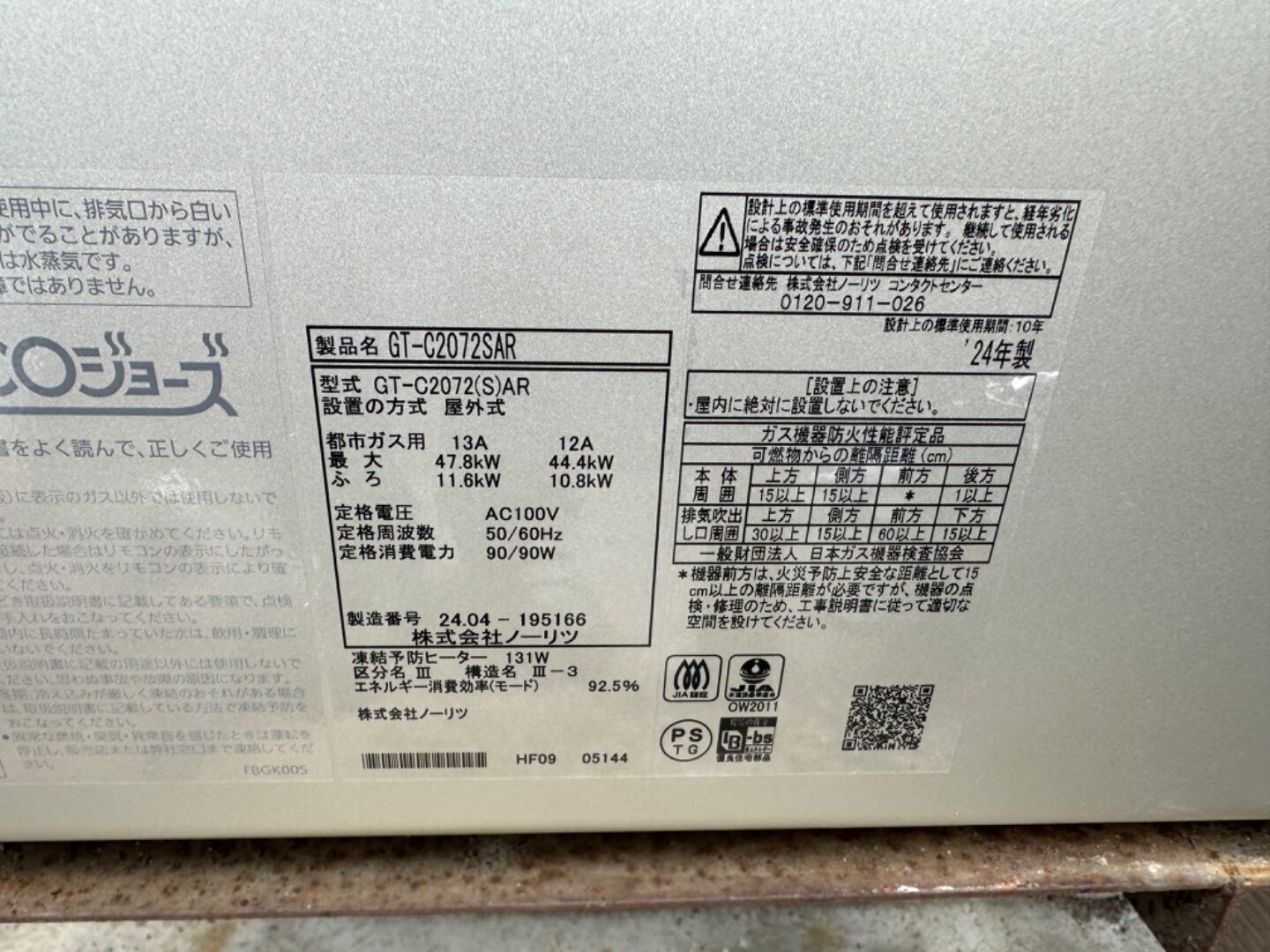 宮城県宮城郡利府町 一般戸建お客様 ノーリツ製ガスふろ給湯器取付工事