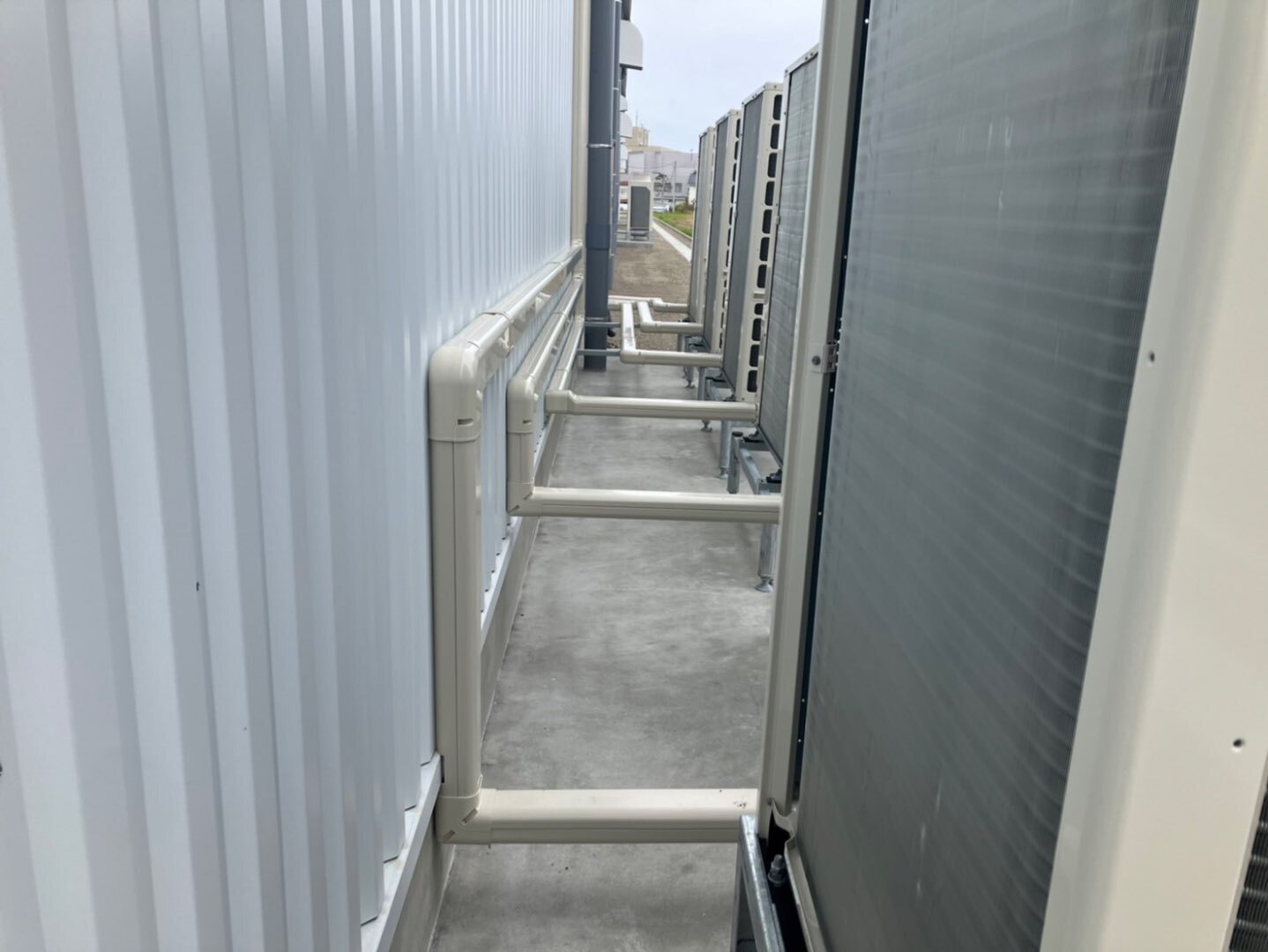 • 室外機は外部機械室に集中配置し、メンテナンス動線と排熱効率を両立する設置構成を採用。