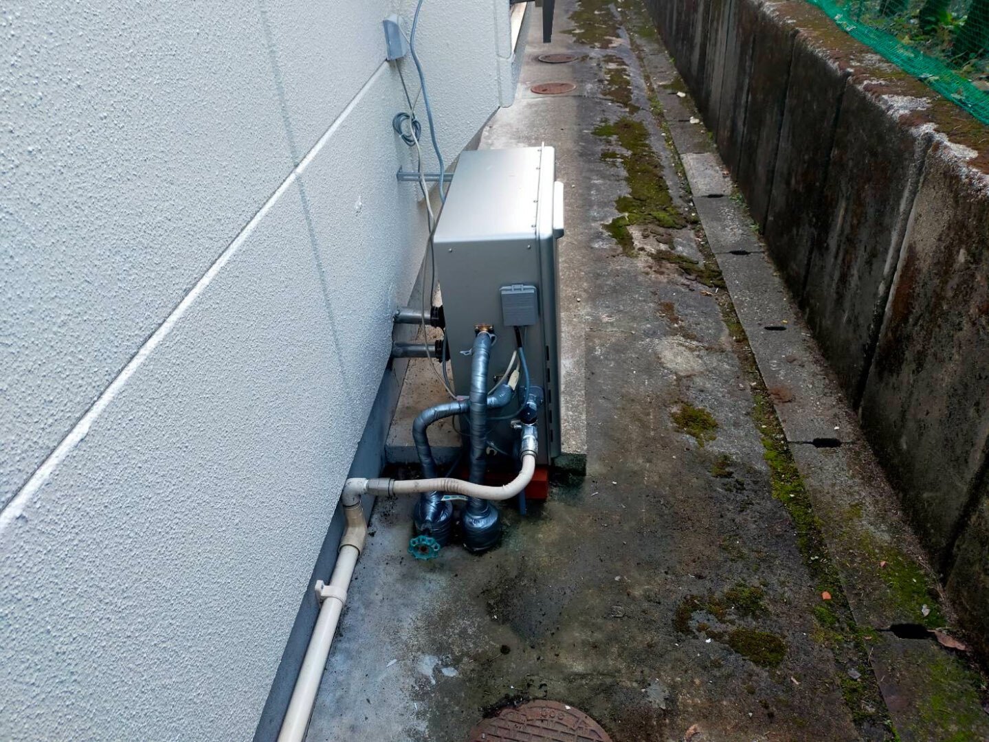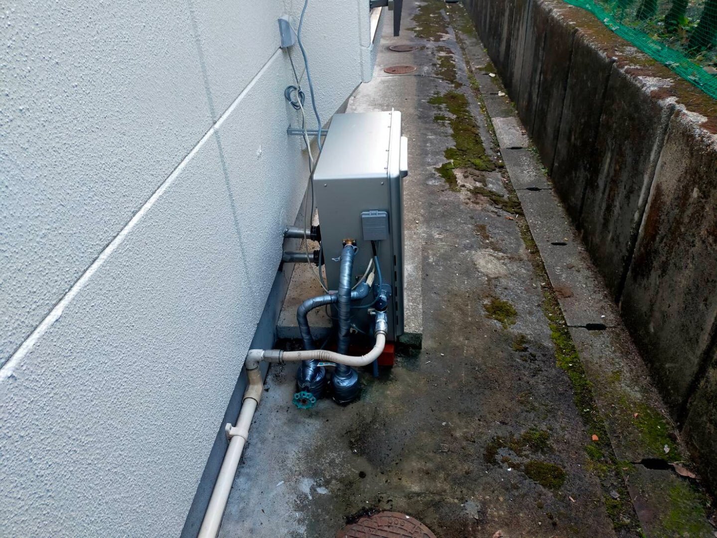 古い給湯器は配管の腐食や保温材の劣化が見られたため、
