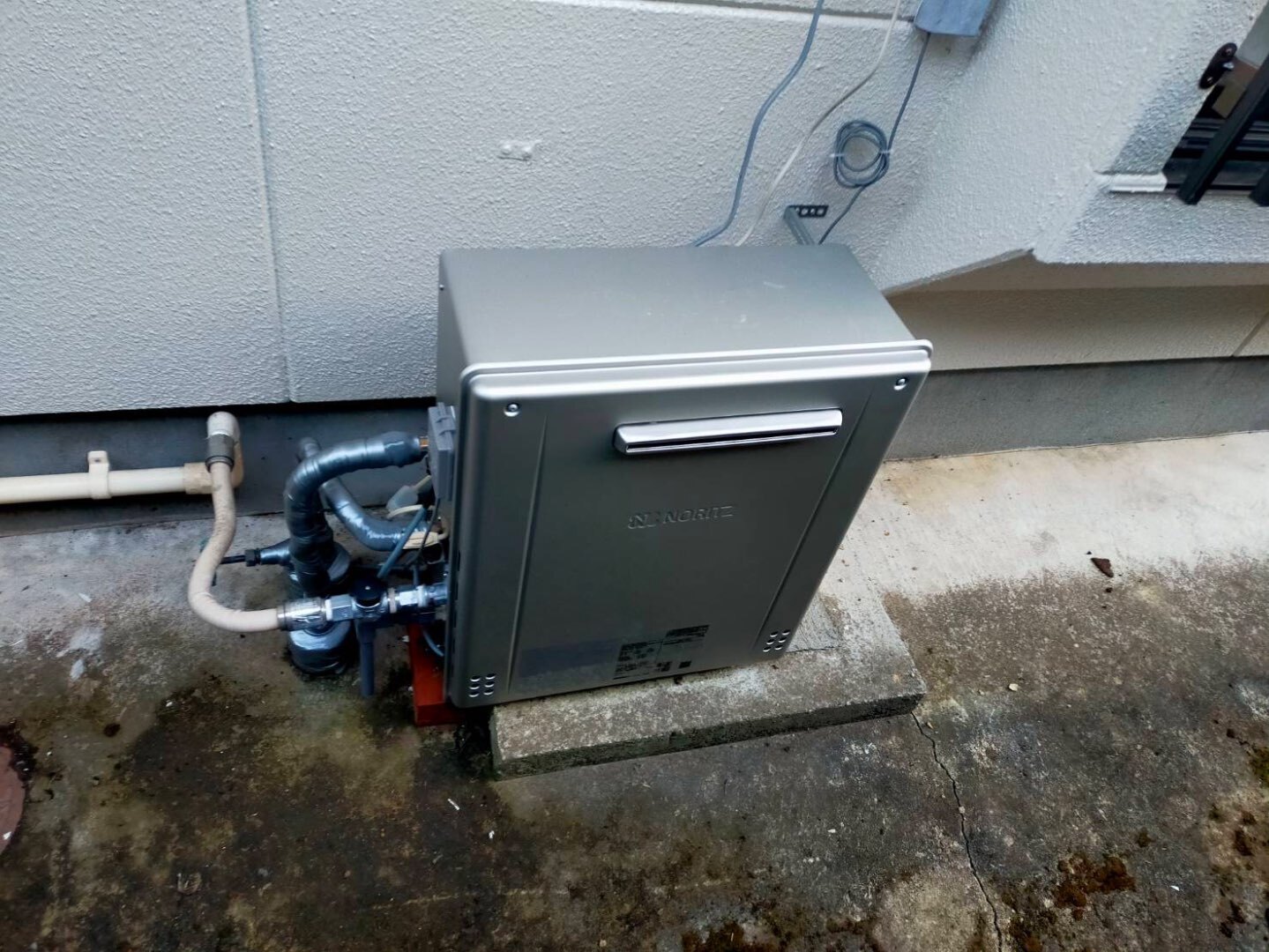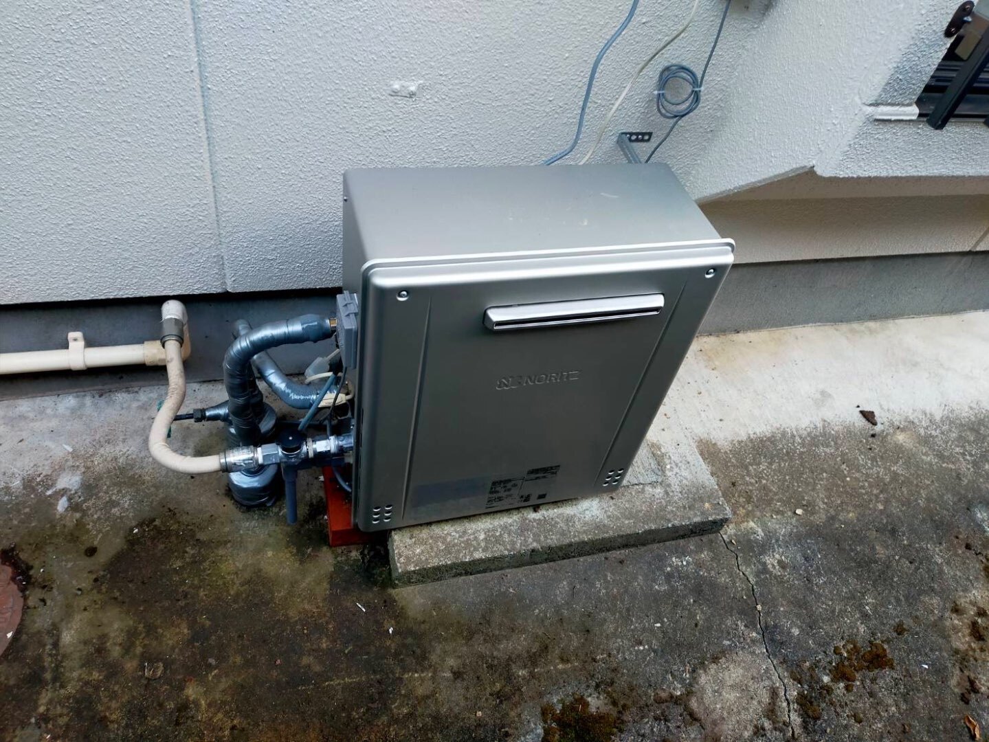 ノーリツ製の屋外設置型ガス給湯器 「GRQ-C2072SA」 へ交換工事を行いました。