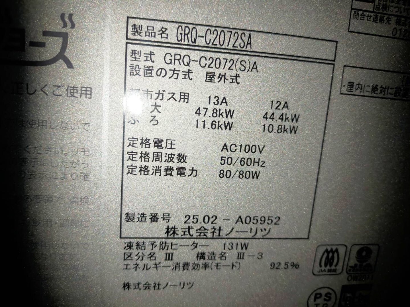 📌 ノーリツ GRQ-C2072SA(20号・オート・屋外設置型)