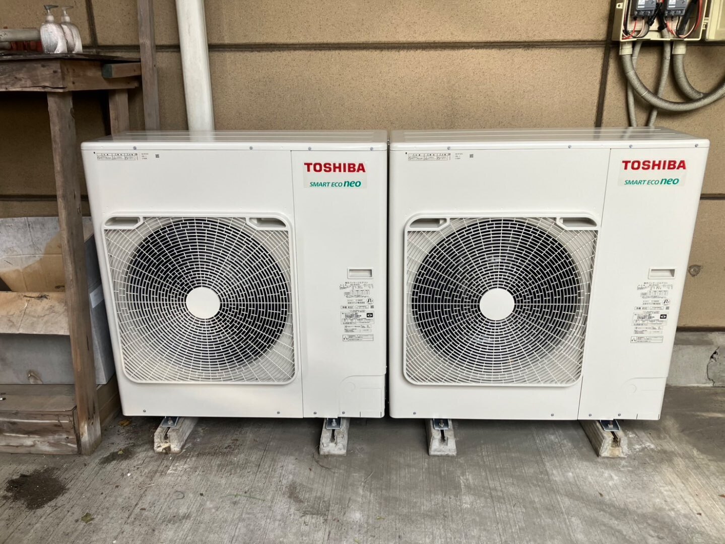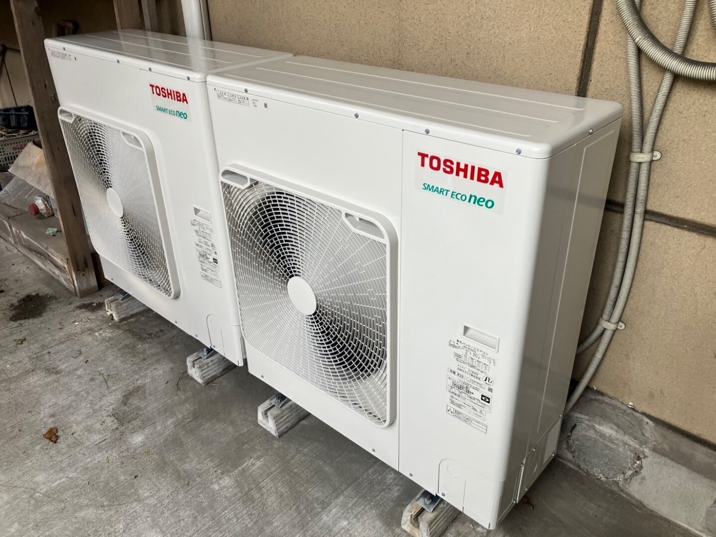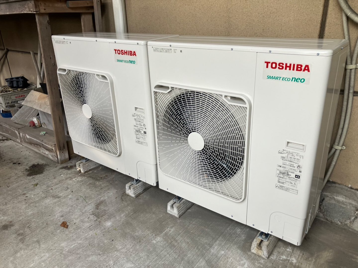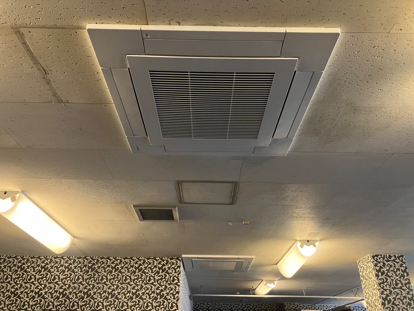 今回採用した機器は、東芝製 業務用空調機「Smart ECO neo」シリーズで、最新の高効率設計により、従来機と比較して消費電力の削減が期待できる仕様となっております。室内機には天井埋込形4方向カセットタイプを採用し、店舗全体へ均一で快適な空調環境を実現いたしました。