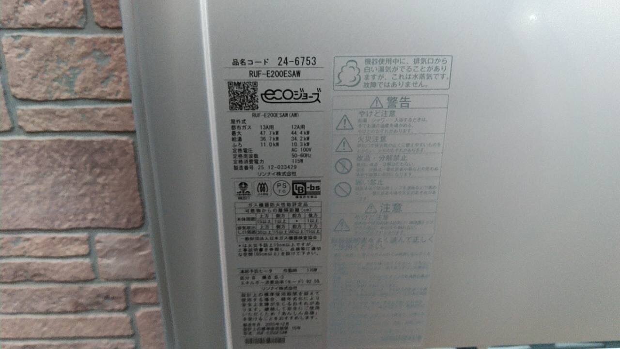 【給湯器交換施工事例】リンナイ製エコジョーズ給湯器へ更新