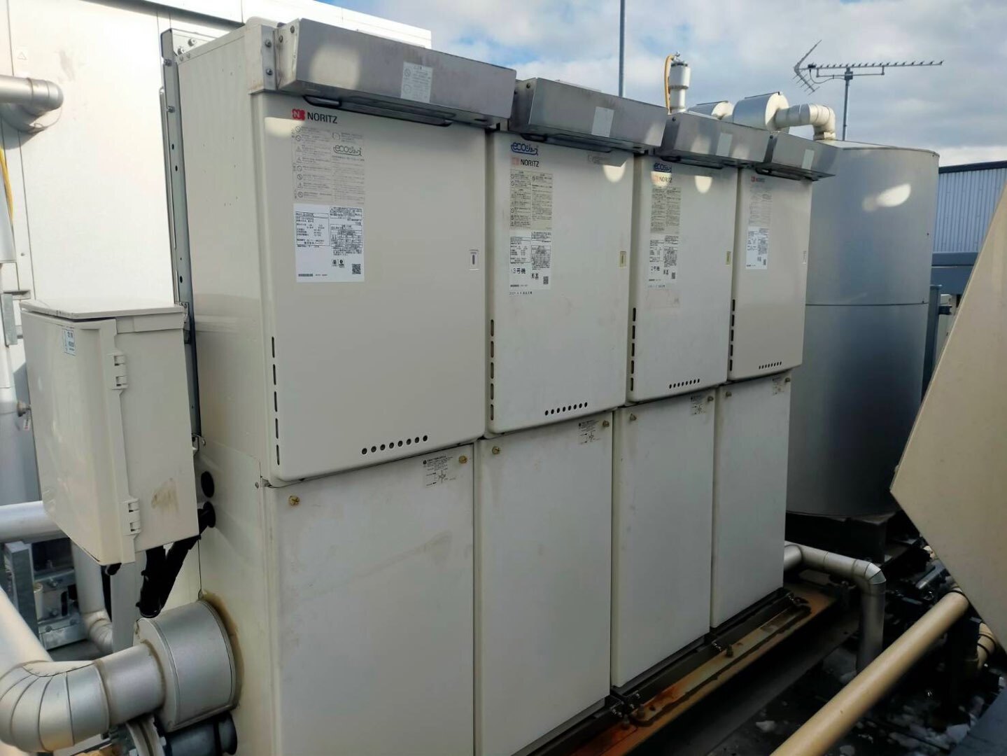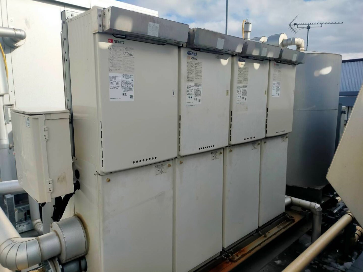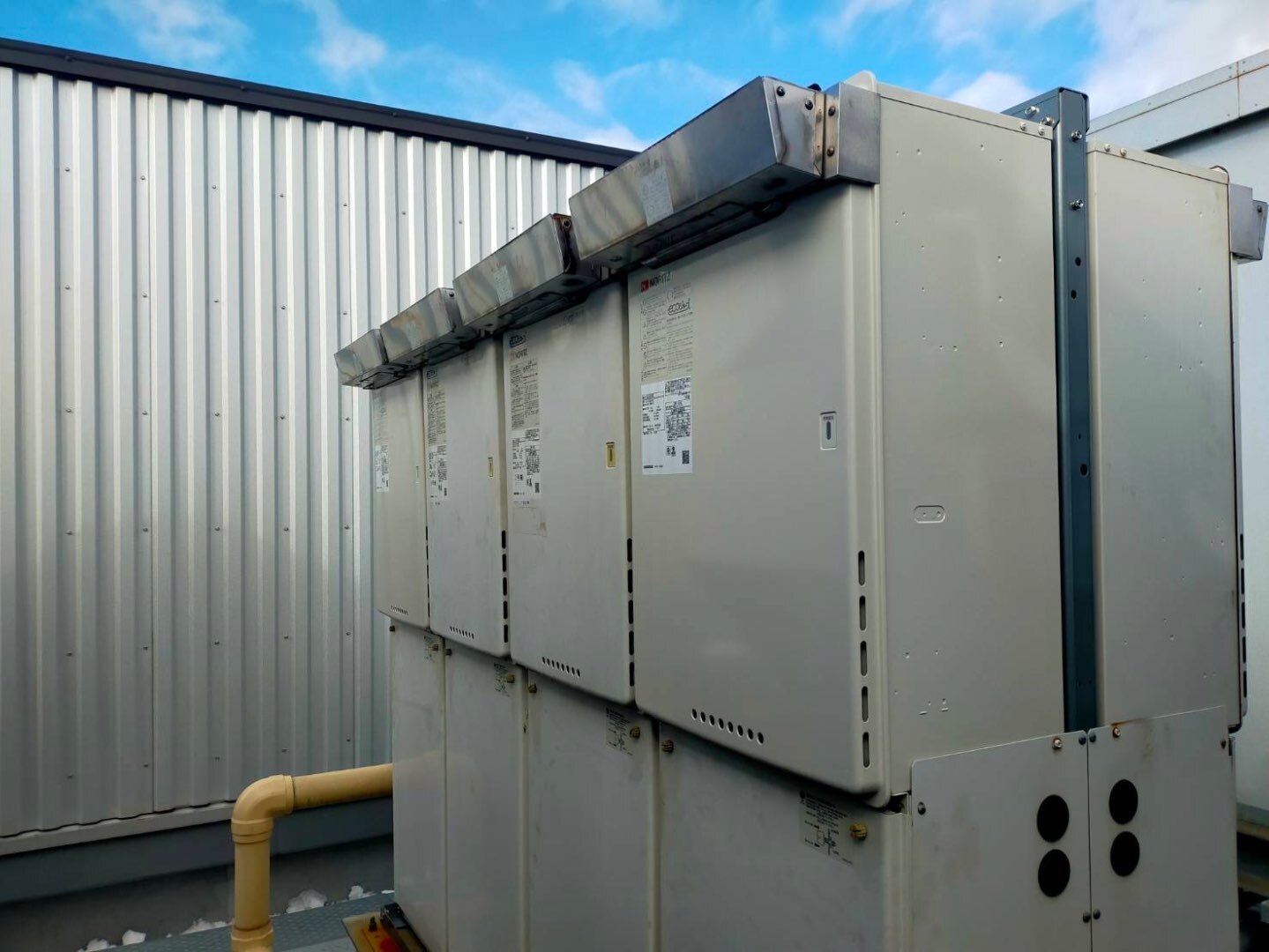 大型ホテル様 屋上に設置された業務用マルチガス給湯器の更新工事を実施いたしました。