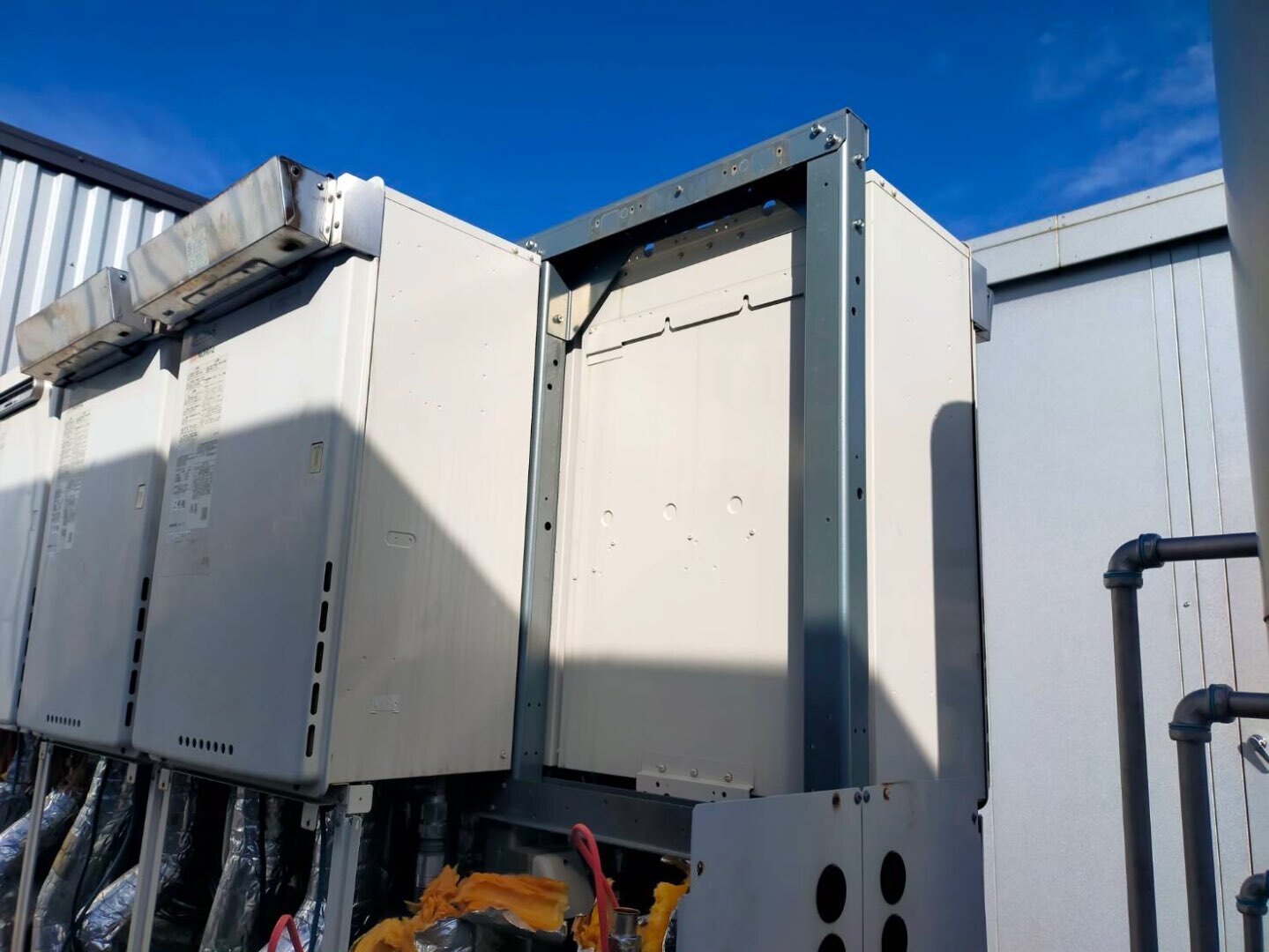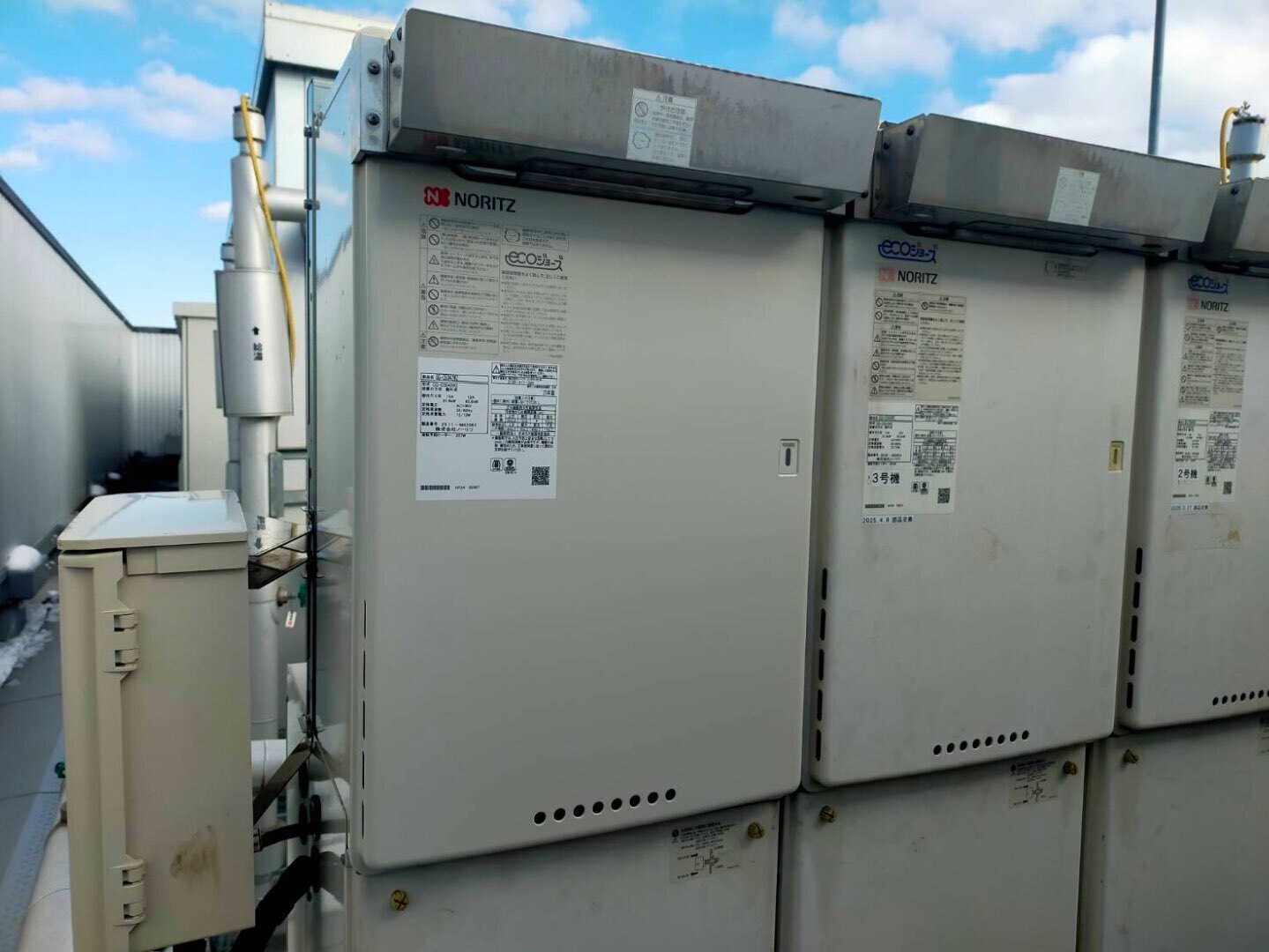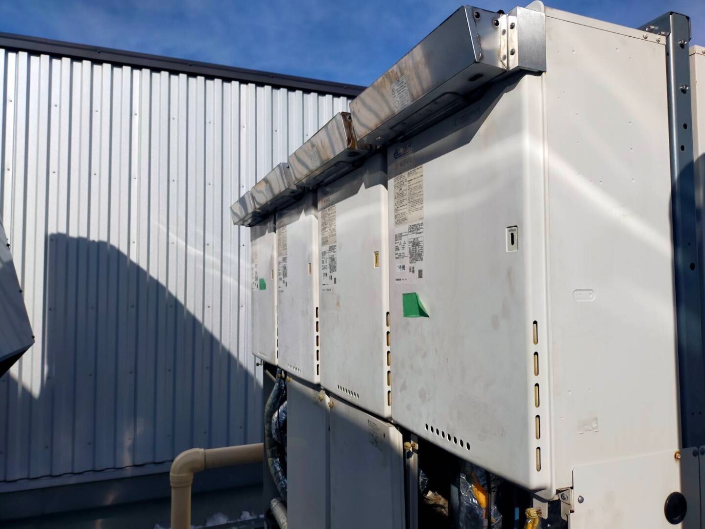 大型ホテル様 屋上に設置された業務用マルチガス給湯器の更新工事を実施いたしました。
