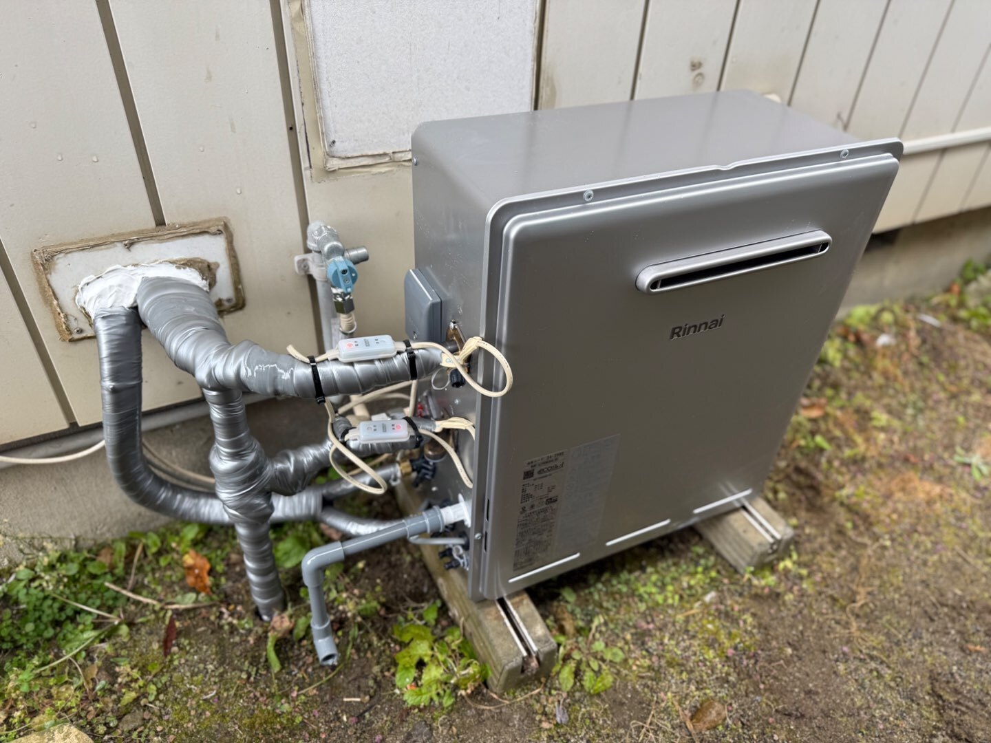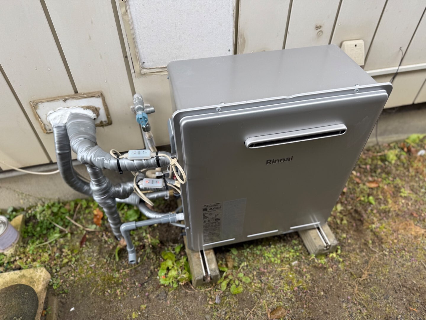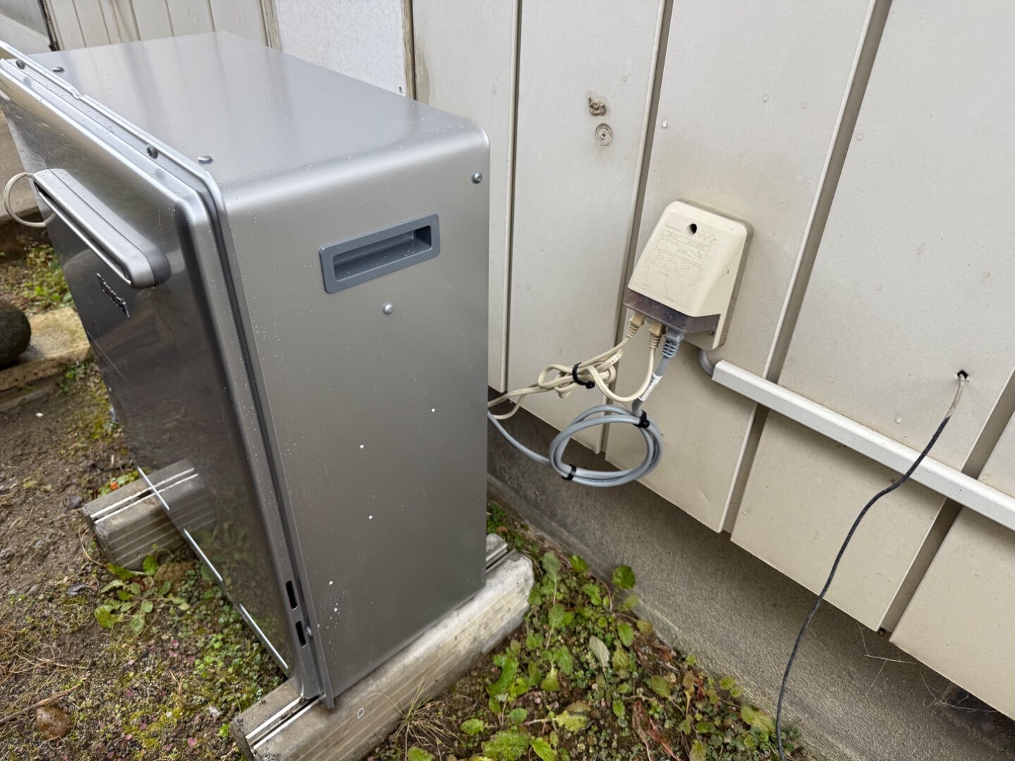 既存のガス給湯器は屋外設置型で、長年にわたり雨風や気温変化の影響を受けていました。