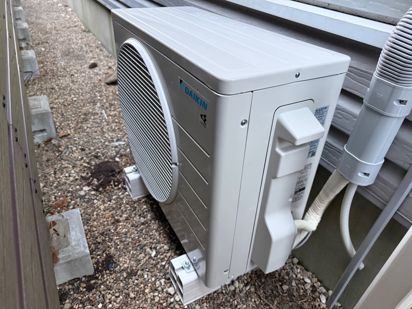 **ダイキン製ルームエアコン新規取付工事の「室外機まわり外部工事」**についてご紹介します。