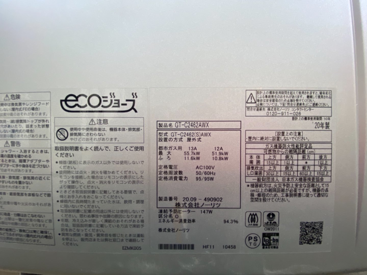 宮城県仙台市太白区 戸建一般お客様 ノーリツエコジョーズガスふろ給湯器交換工事