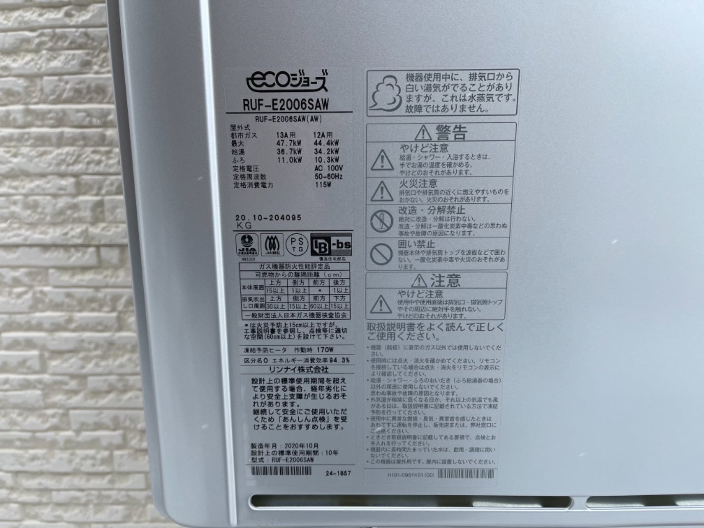6.新規機器情報 Rinnai リンナイ 型式 RUF-E2006SAW マルチリモコン MBC-120V