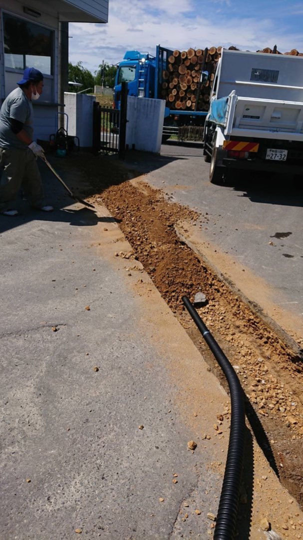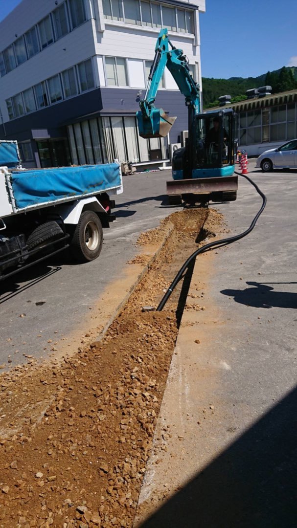 秋田県鹿角市 工場施設様 空調機器用 動力電源用幹線埋設配線工事