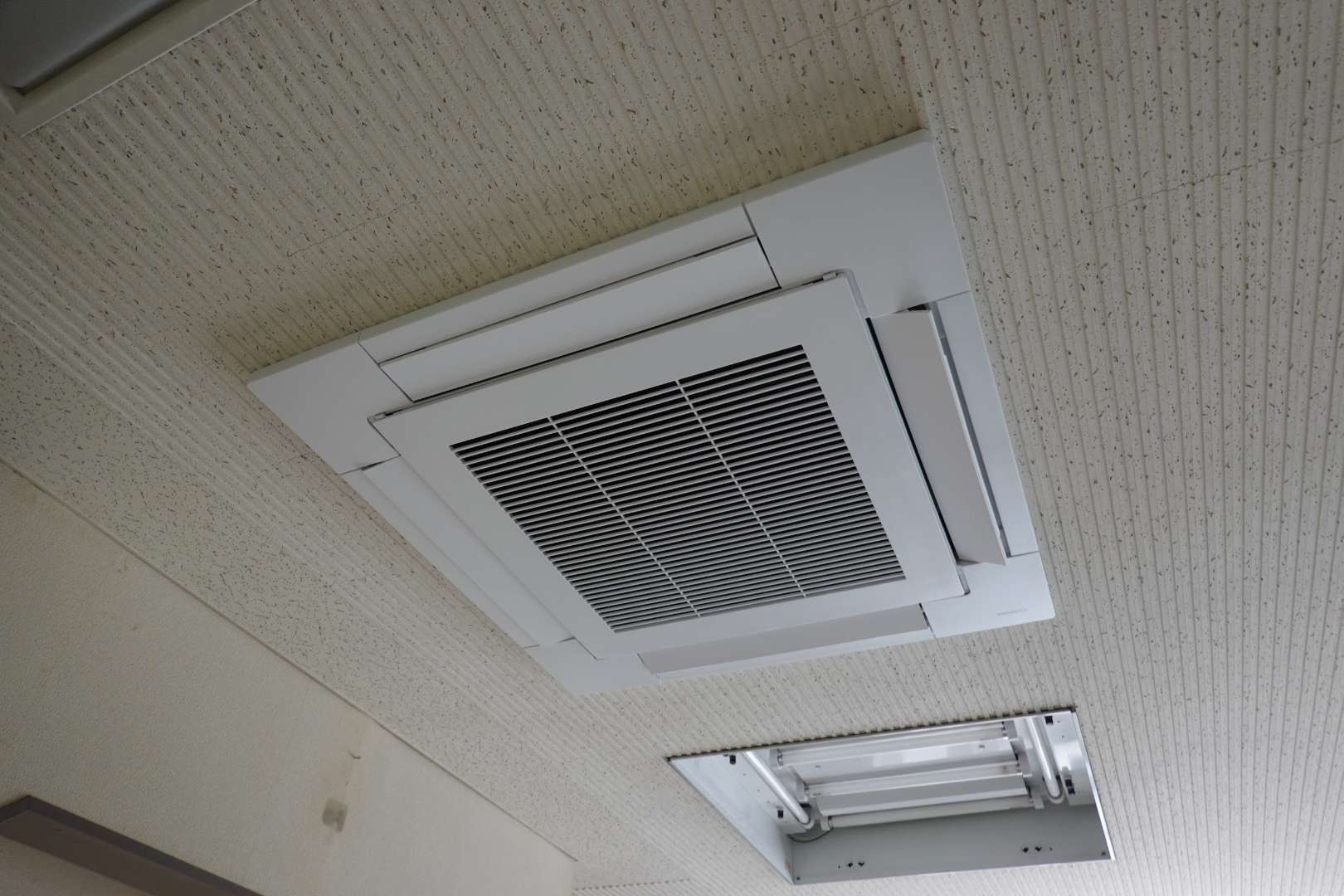 1.既存サンヨー製業務用エアコン故障のため新規東芝キャリア用業務用エアコン交への交換工事。