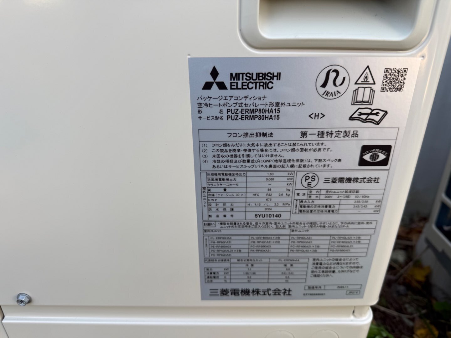 • 室外機:PUZ-ERMP80HA15(冷暖兼用・R32冷媒採用)
