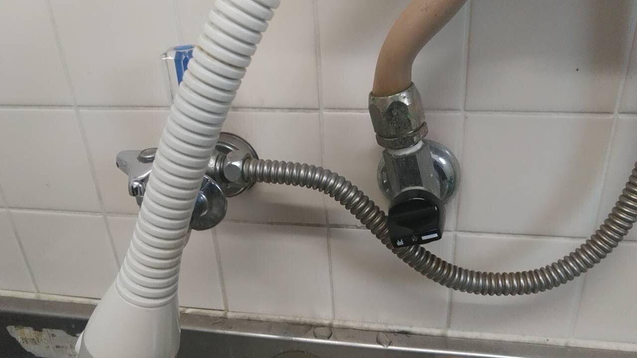既存の湯沸かし器を慎重に取り外し、ガス配管・給水ホースの状態を確認。