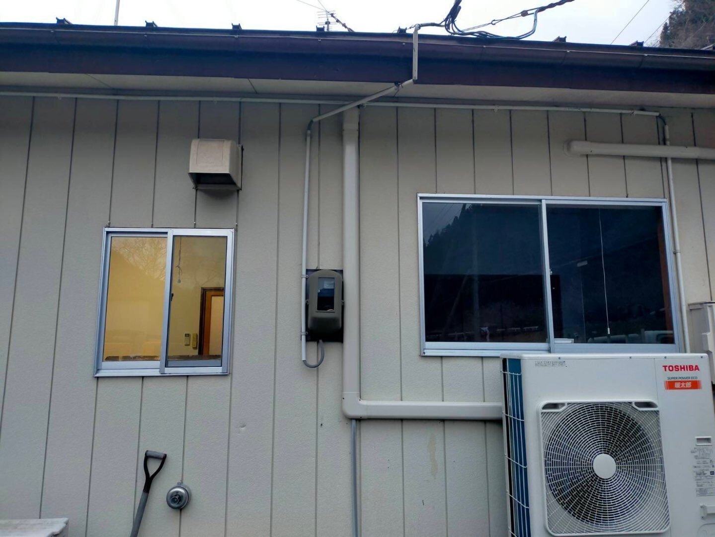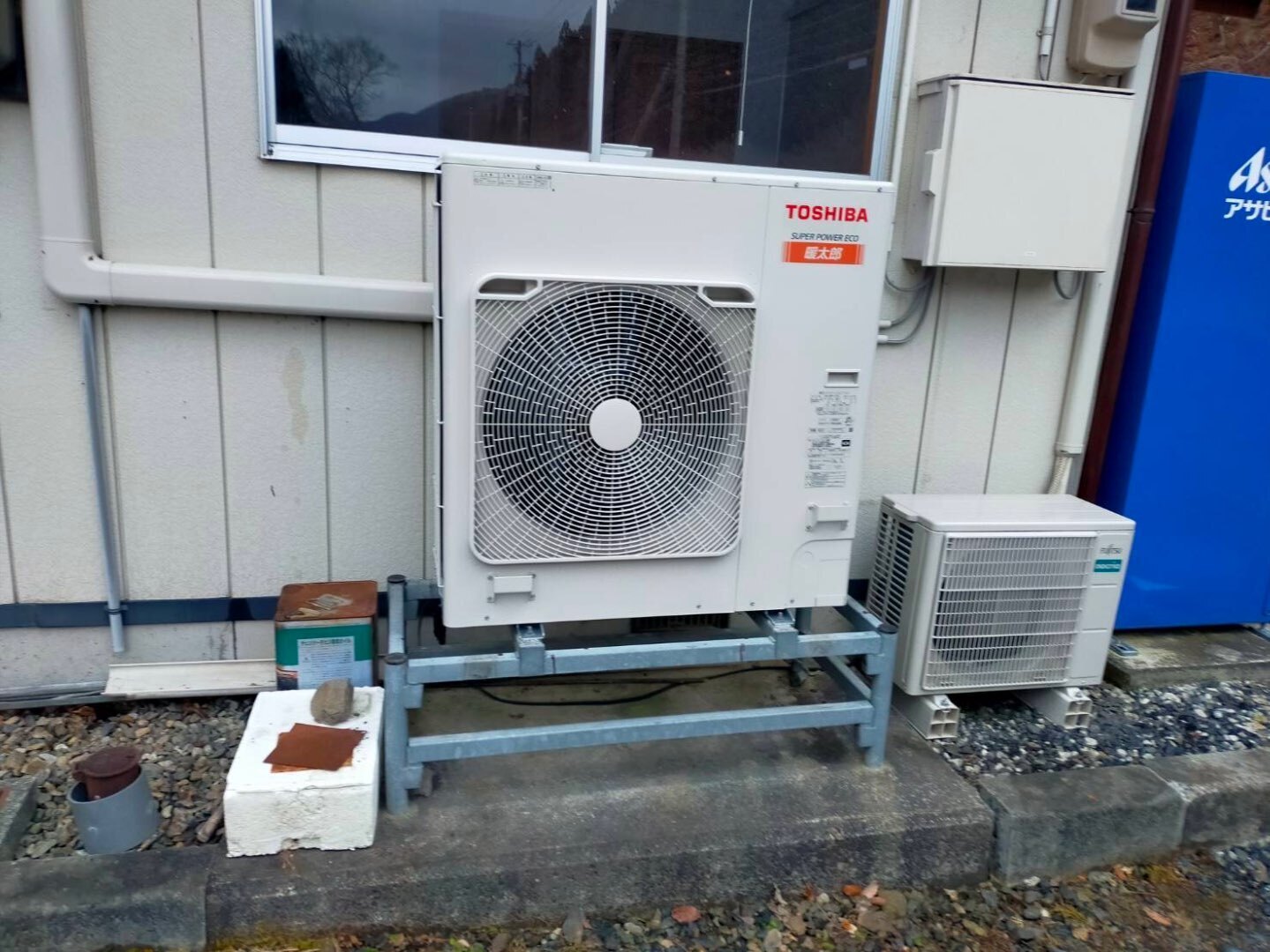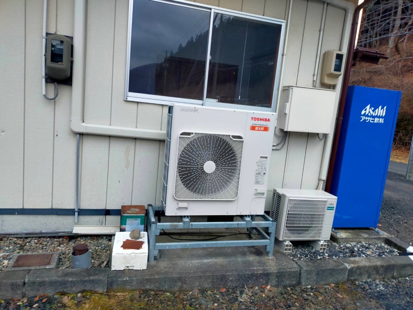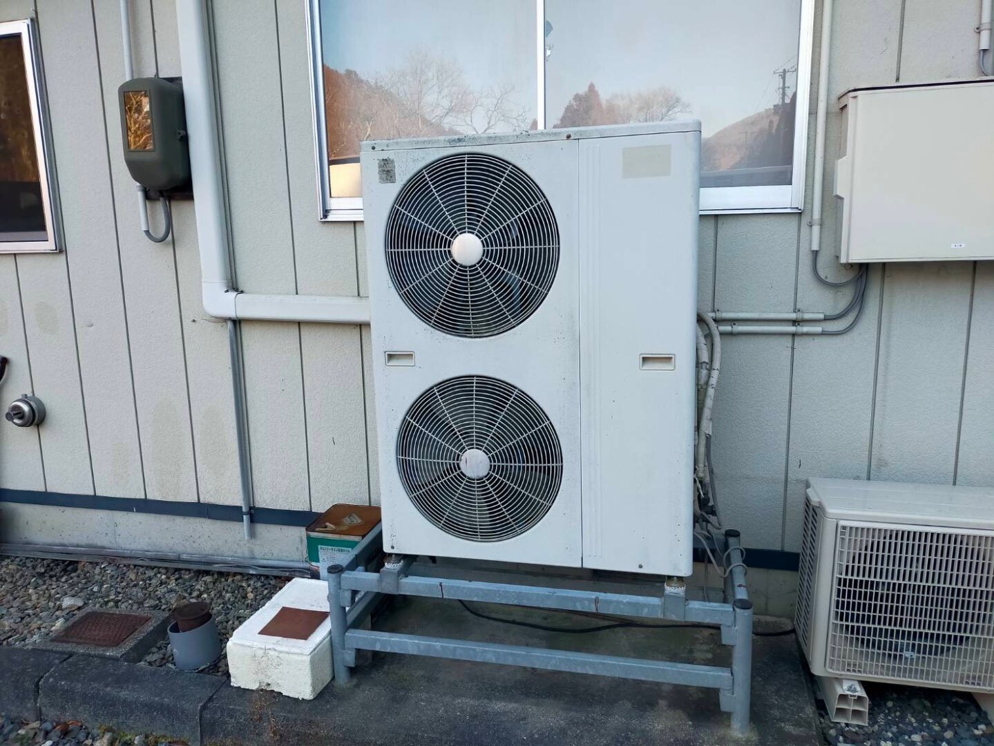 本現場は、山間部に位置する建物で、冬季の外気温が低下しやすい寒冷地エリアに該当します。そのため、一般的なエアコンでは暖房能力が不足したり、霜取り運転による暖房停止が頻発したりするリスクがありました。