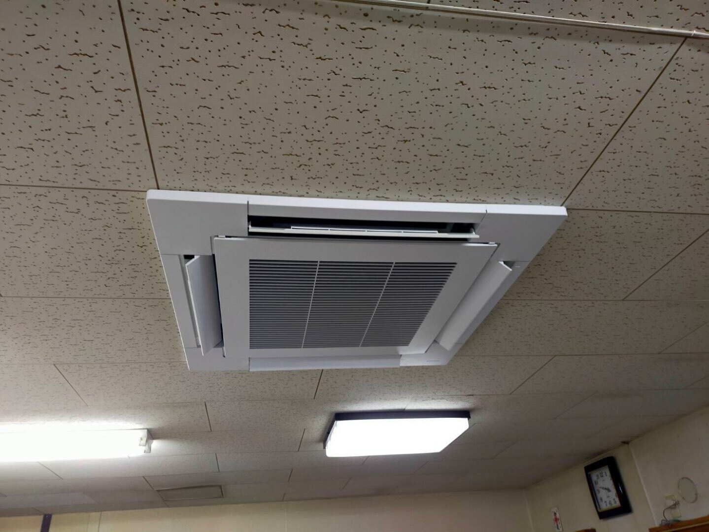 施工前の室内機は、旧型の天井埋込4方向タイプ。