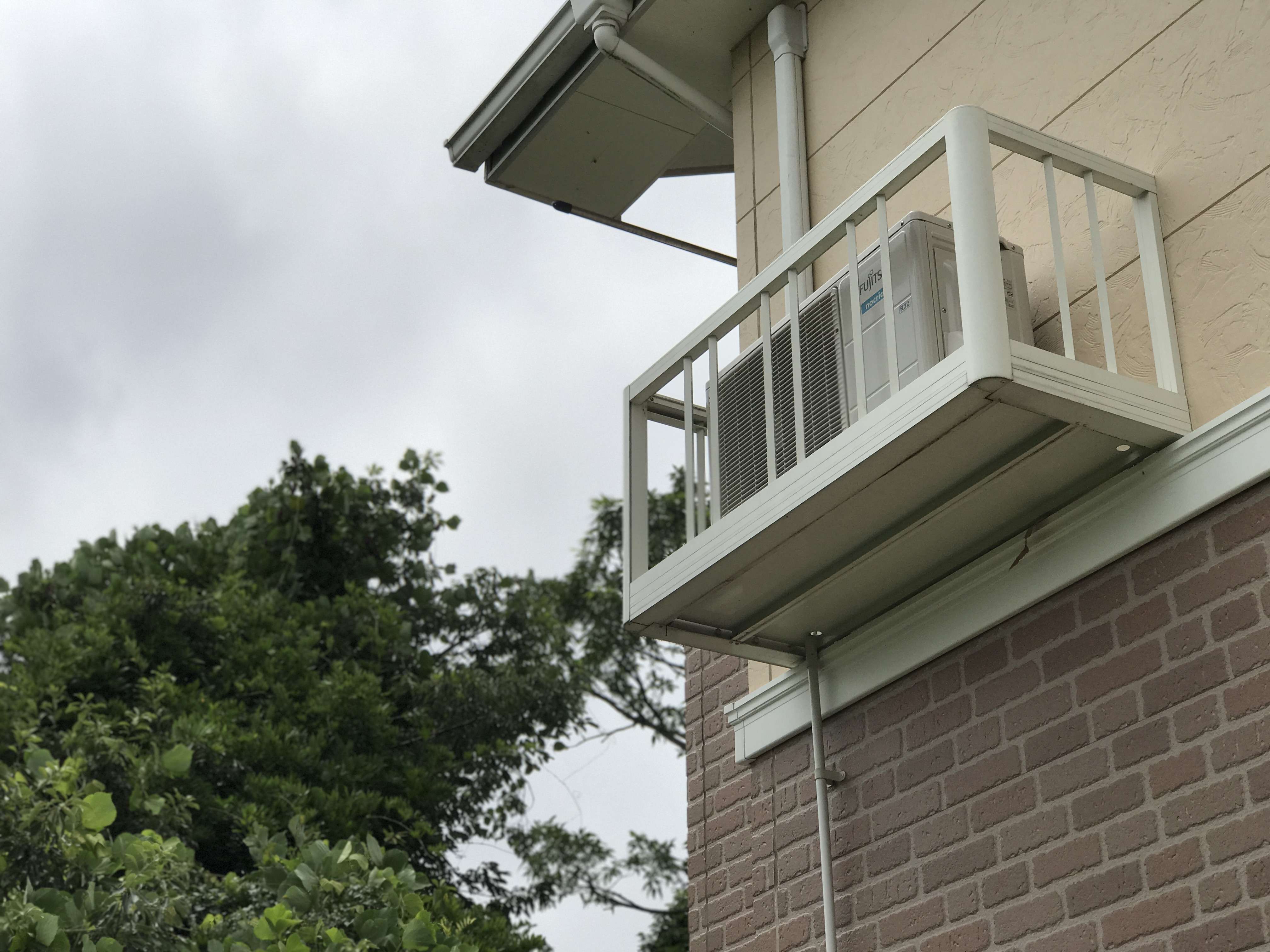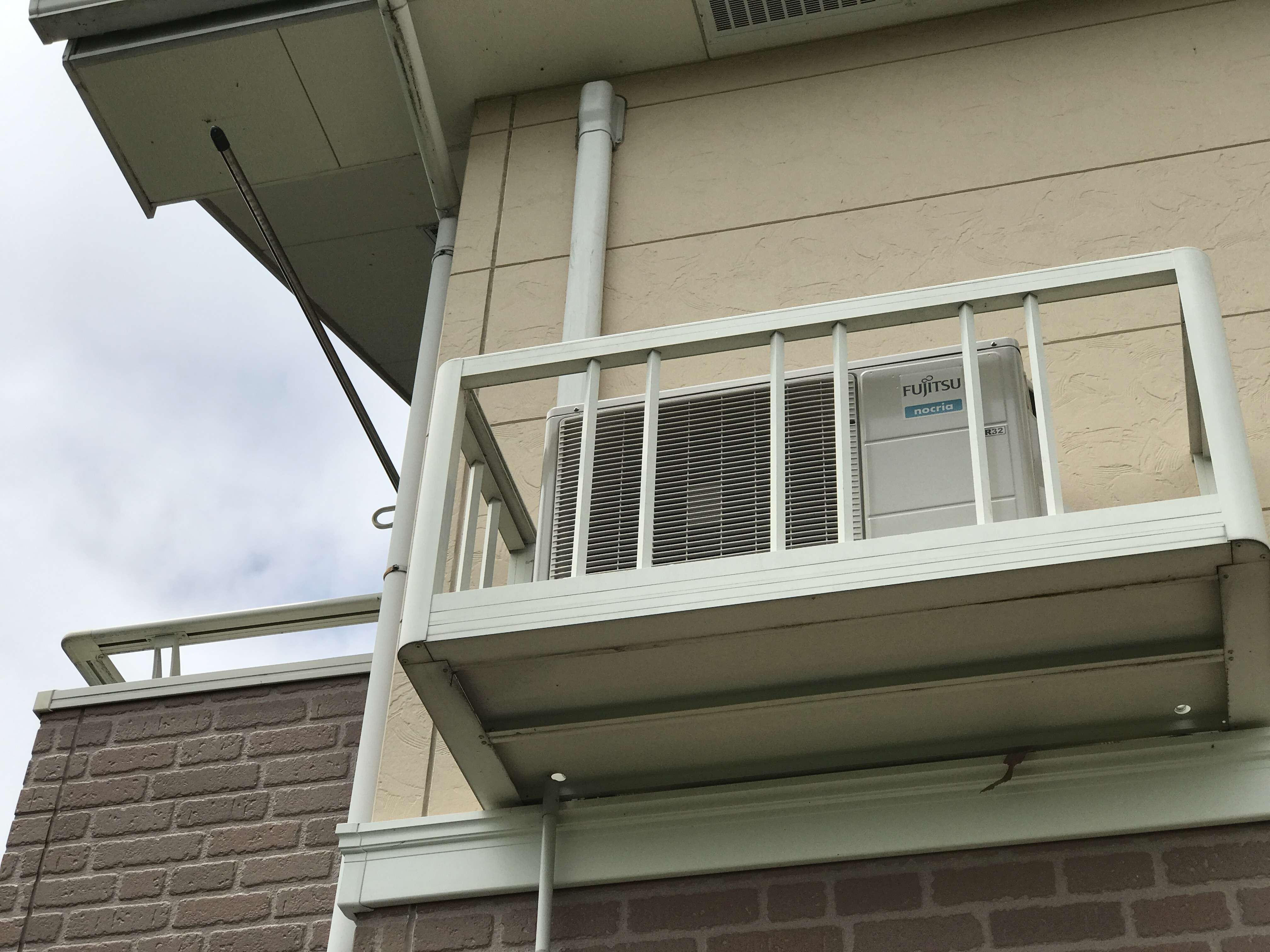 アパートの二階の入居者様のルームエアコンの交換工事を施工させて頂きました。