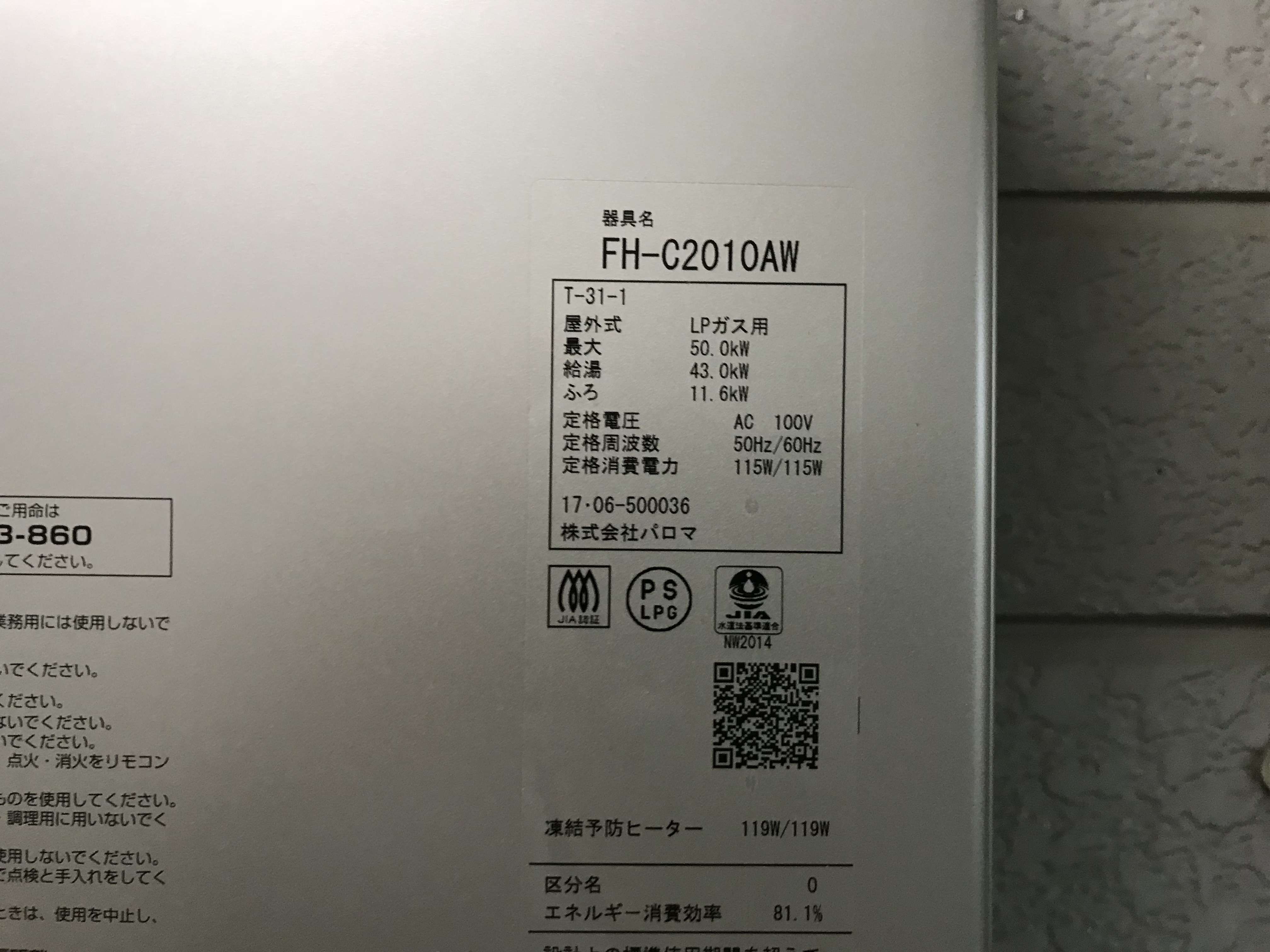 パロマ製 ガスふろ給湯器