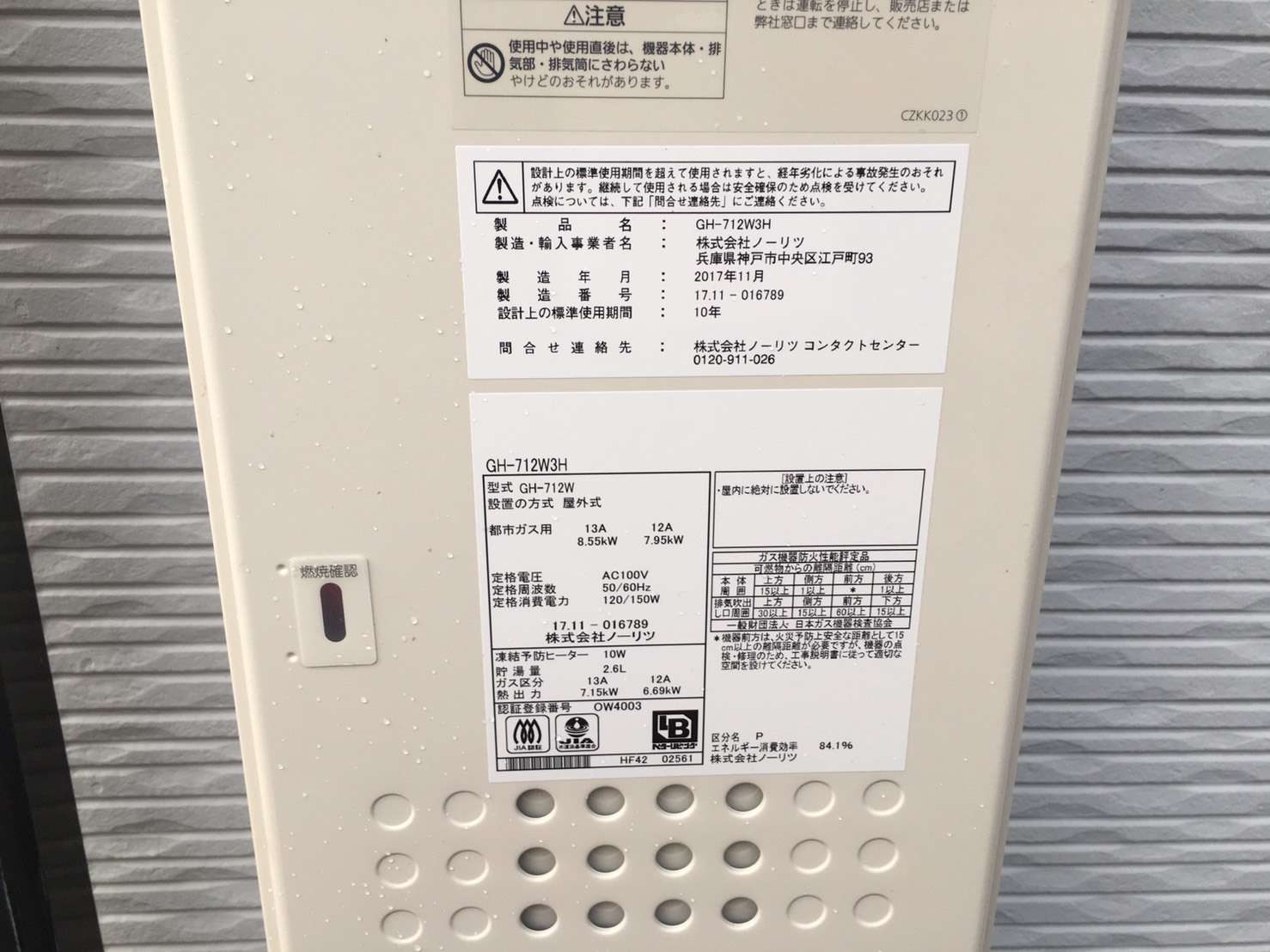 ノーリツ製 ガス温水暖房熱源機
