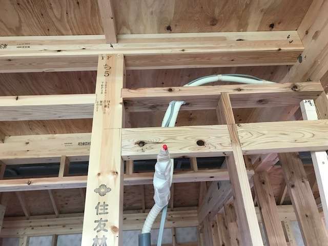 大手ハウスメーカー新築現場 エアコン先行隠蔽配管工事
