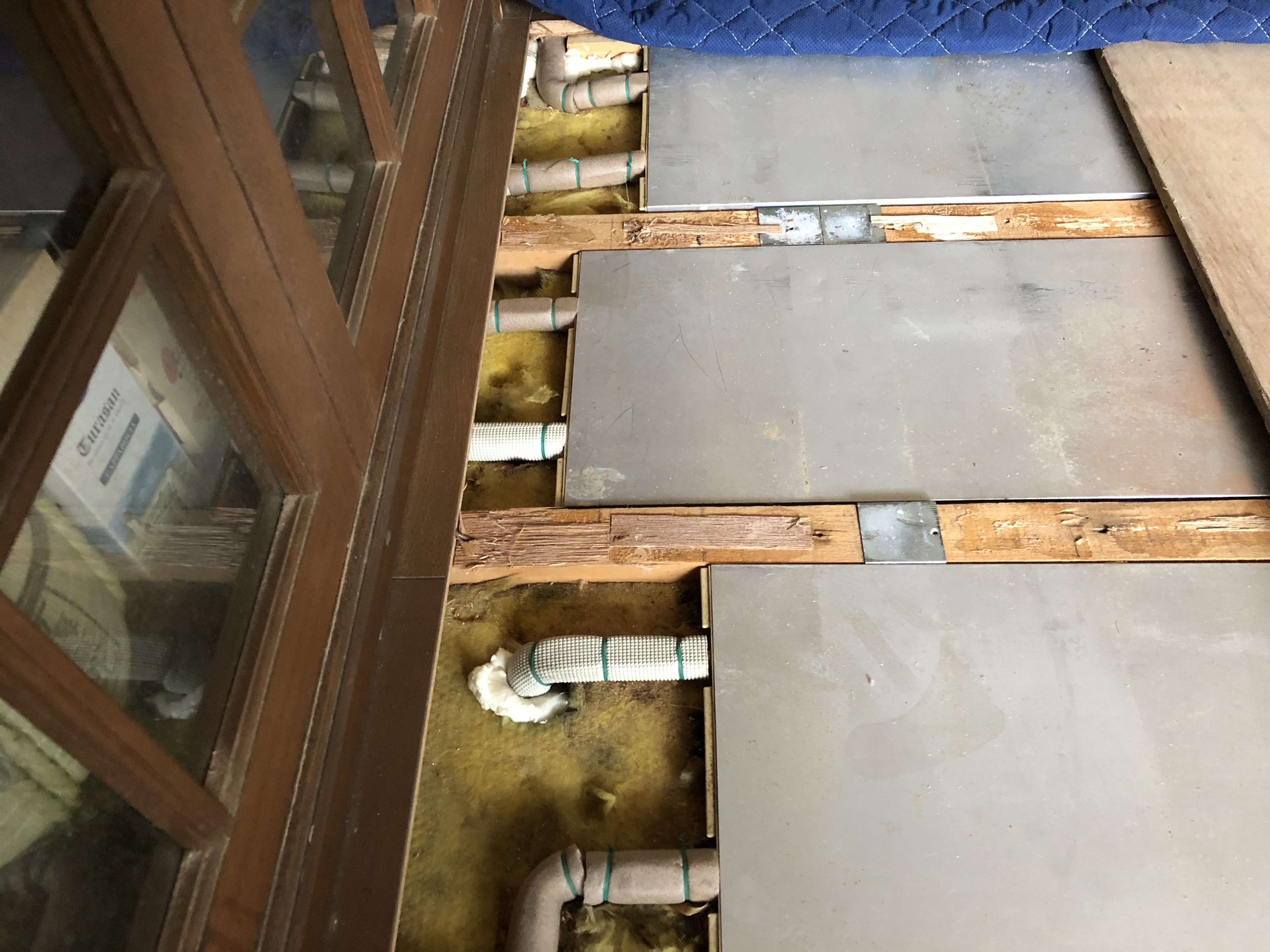 1.床暖房が温まらない。渇水エラーがボイラーリモコンに出る為。解体工事。