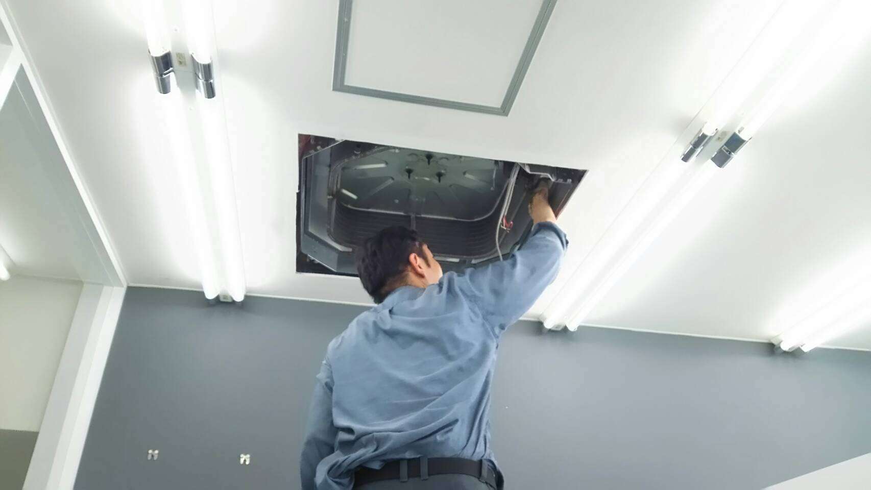1.空調機定期メンテナンスの為洗浄。