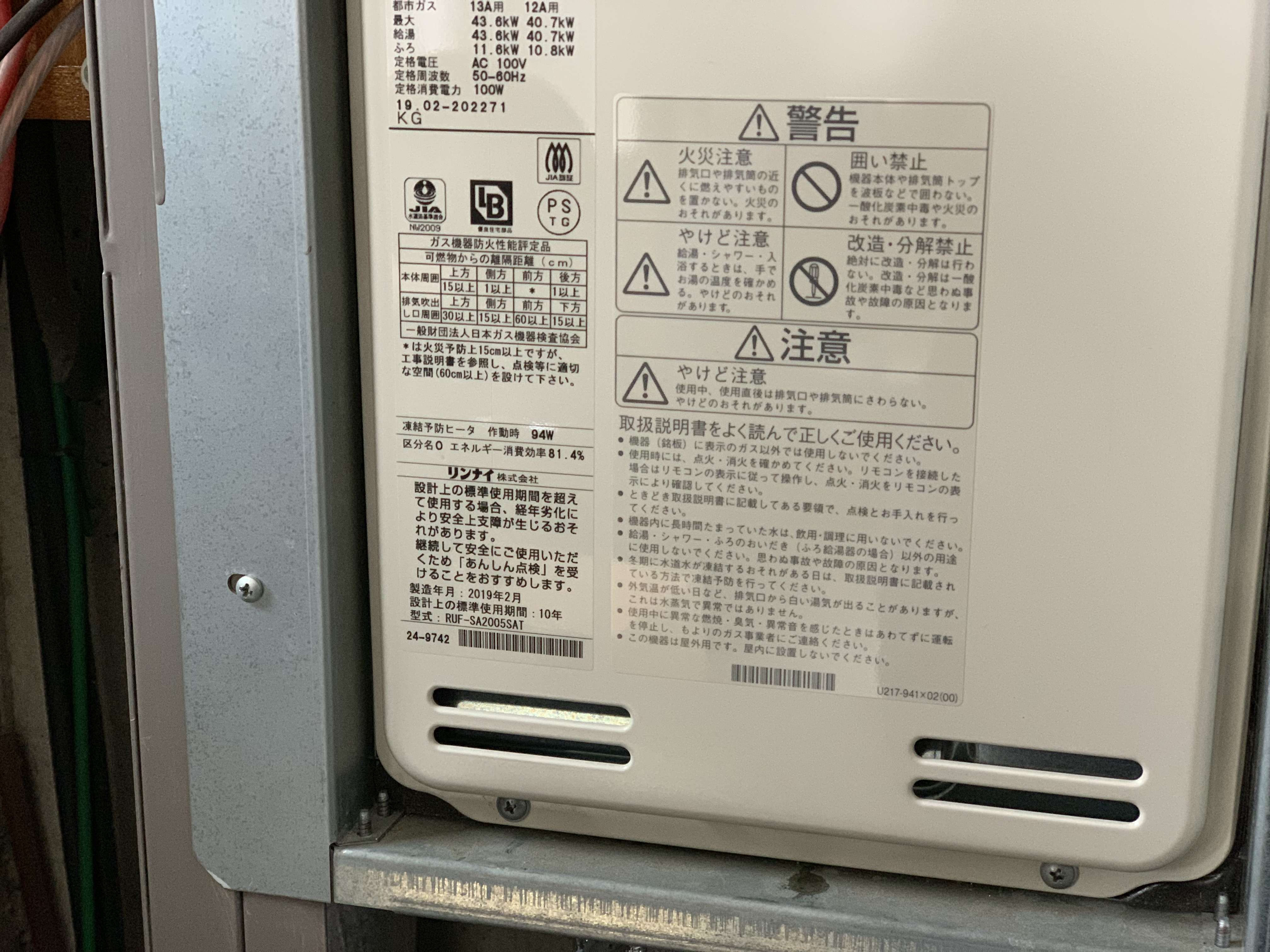 型式 RUF-SA2005SAT 13A 都市ガス用。