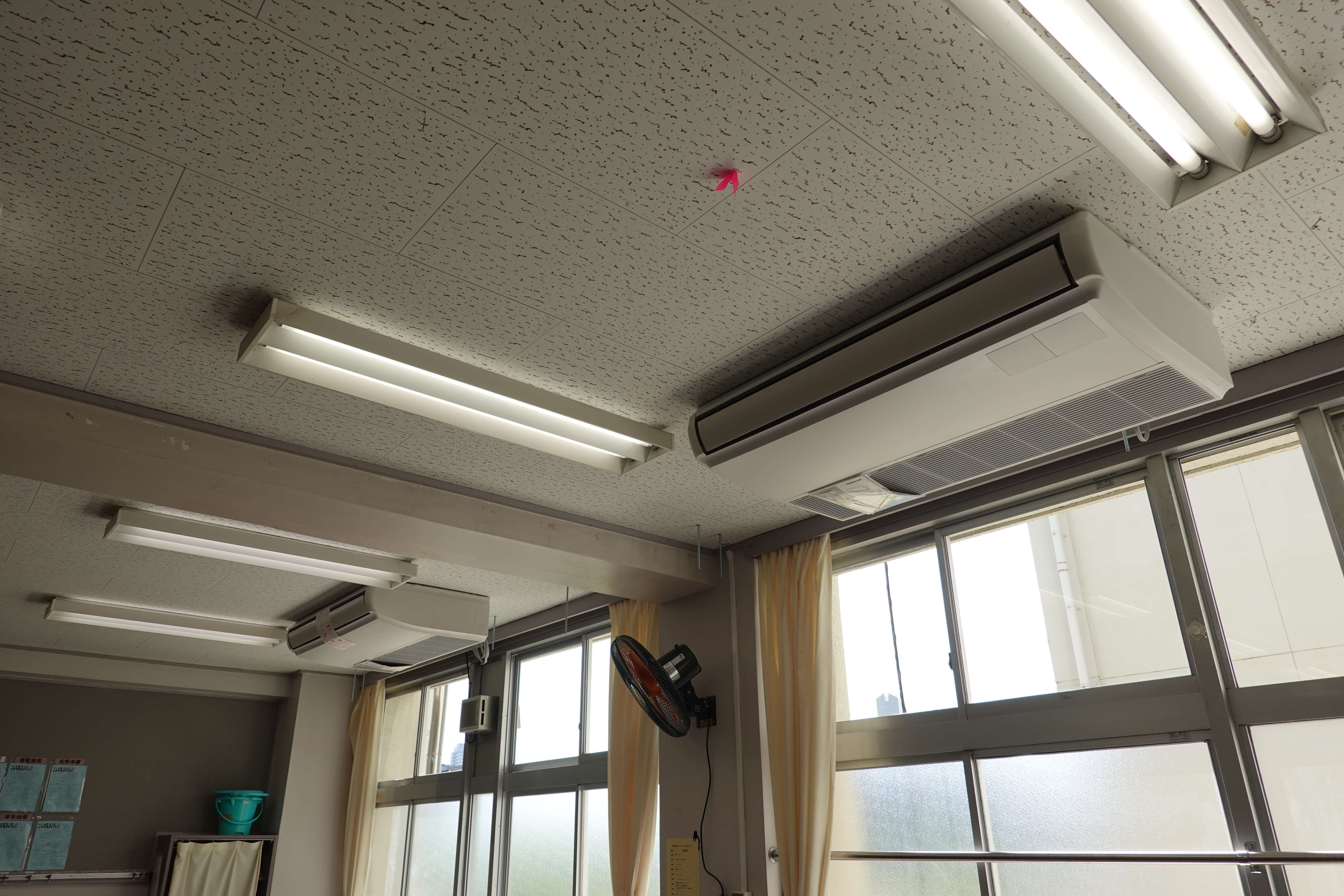 1.校舎内新規空調設備機器設置計画に伴い取付。