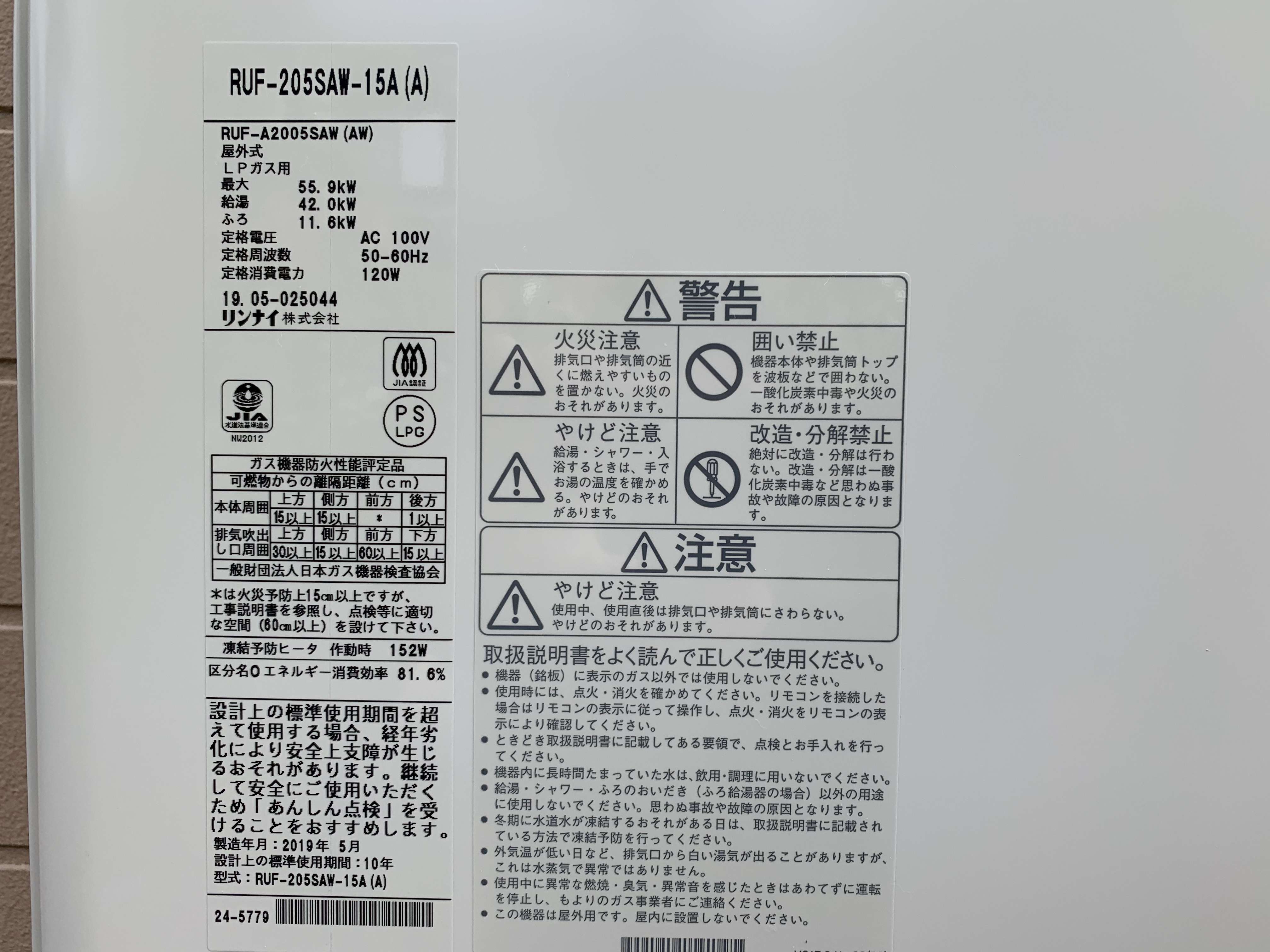リンナイ ガスふろ給湯器