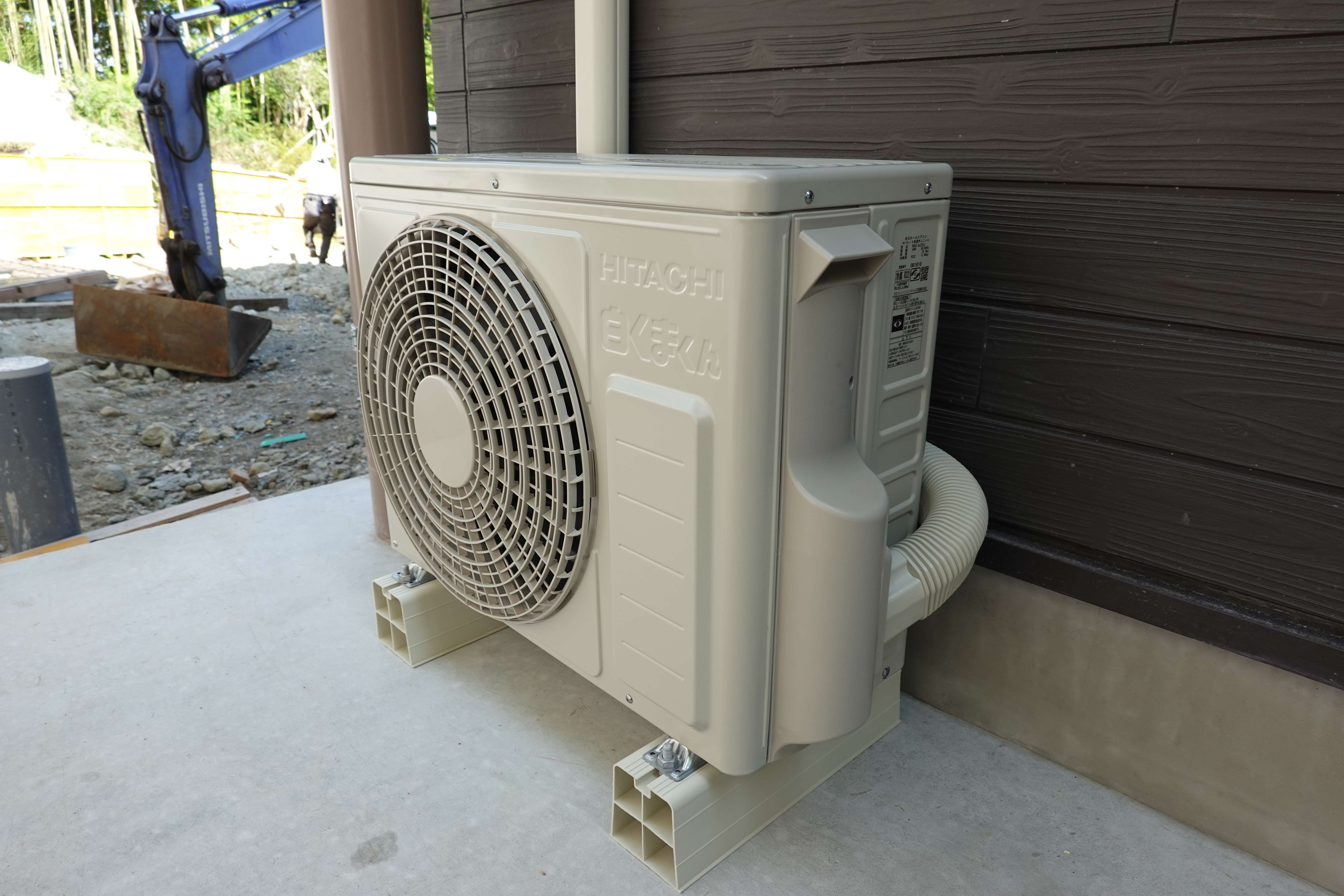 宮城県遠田郡涌谷町猪岡 割烹みうら様新築工事現場 資材室 日立ルームエアコン新規取付工事