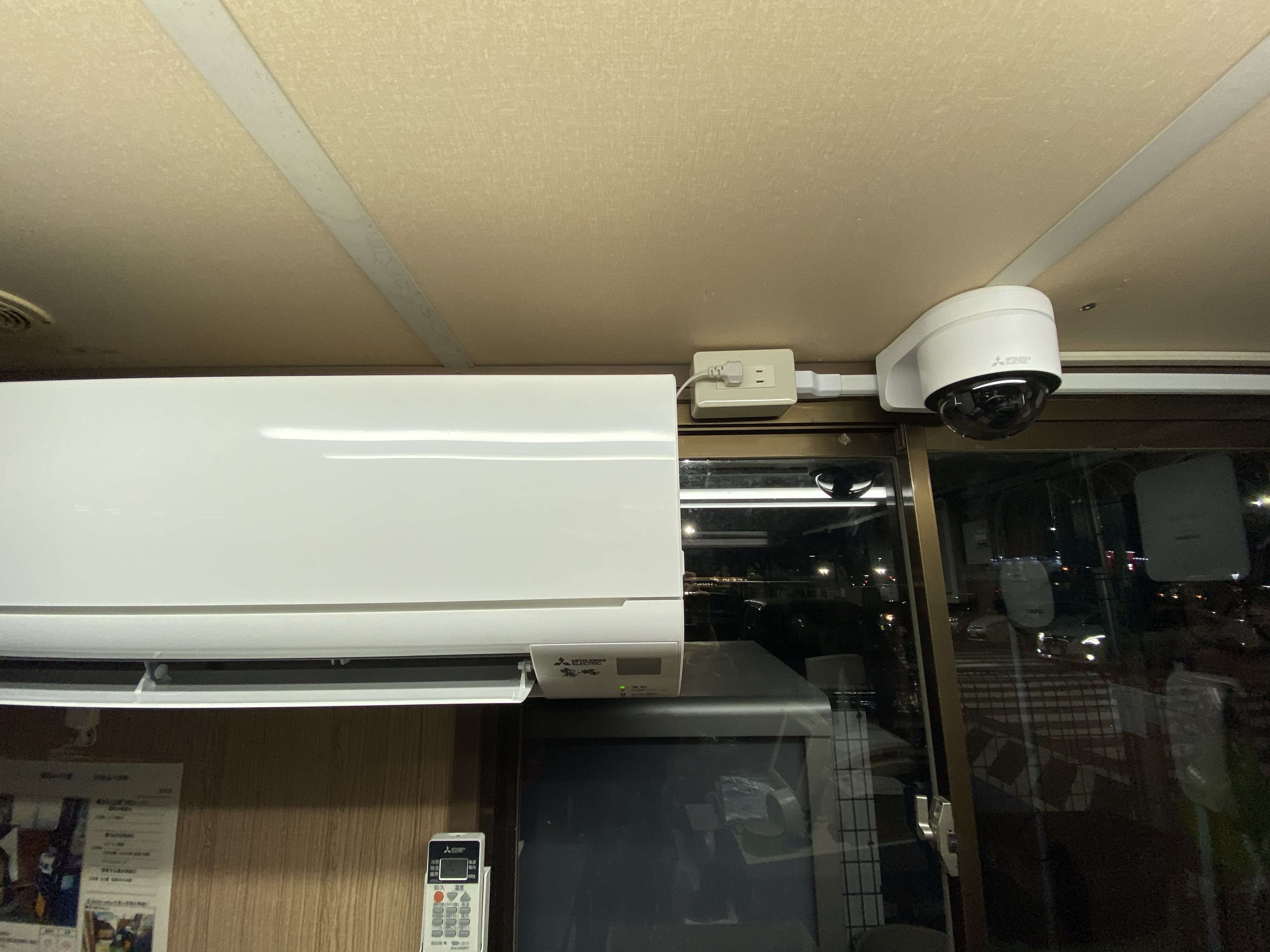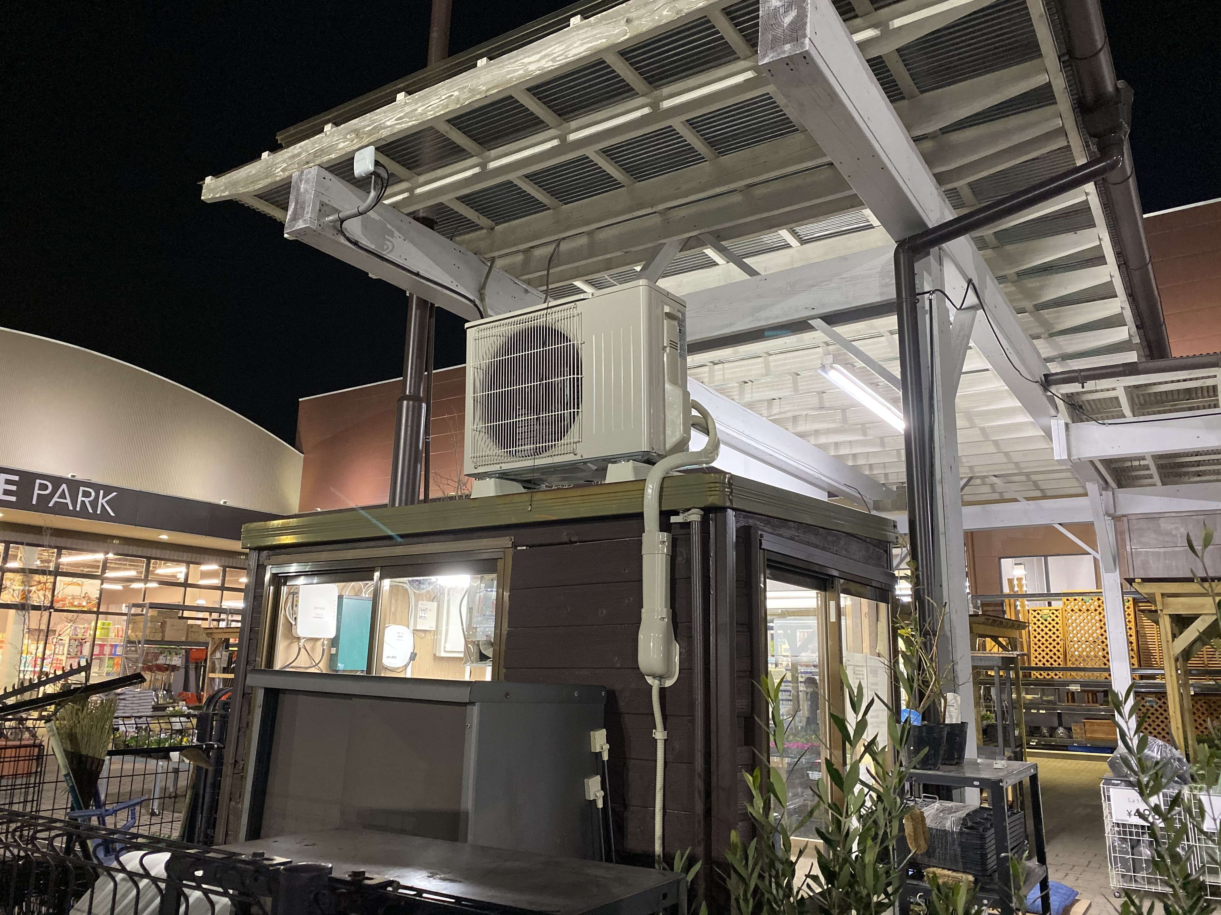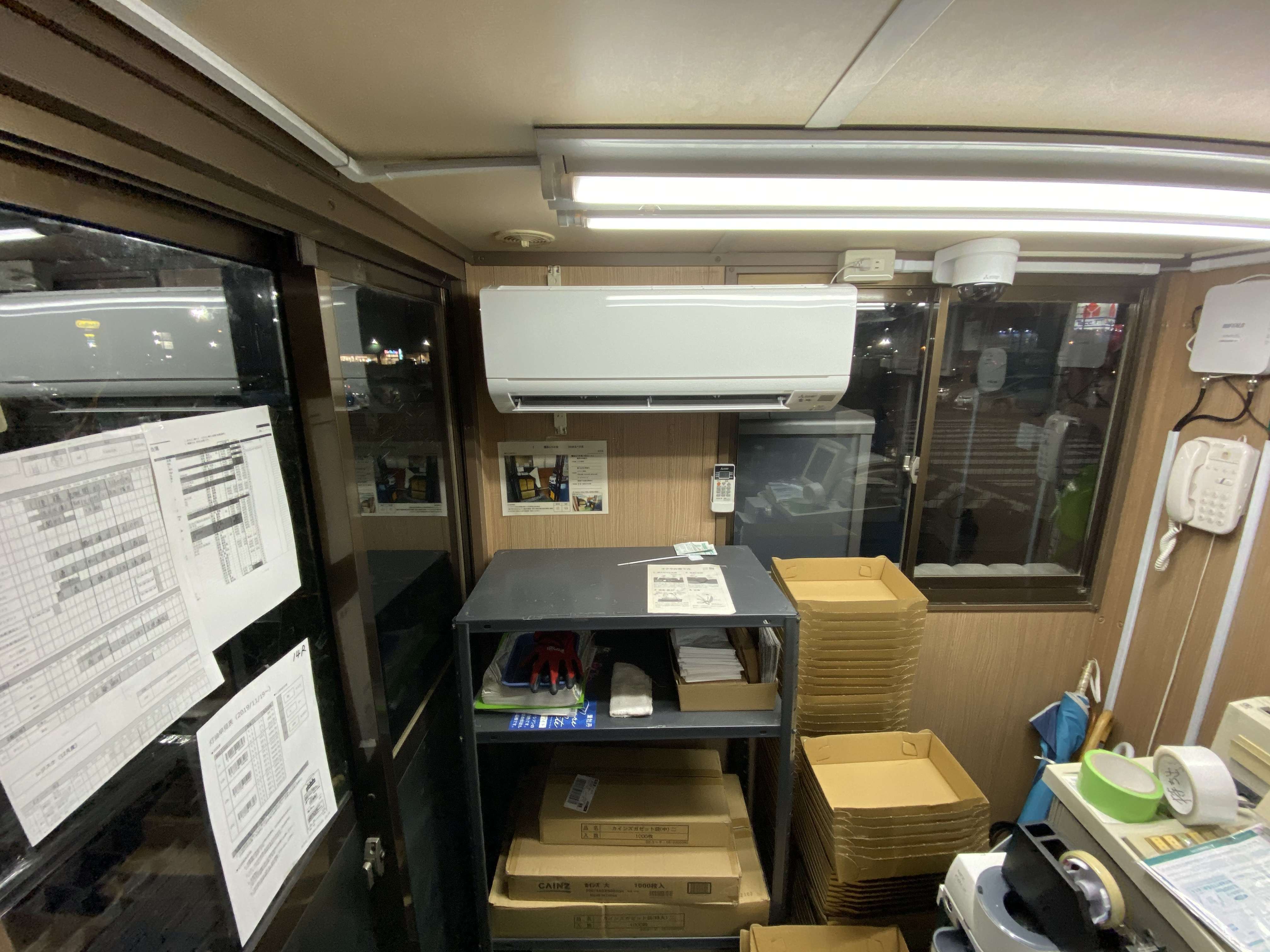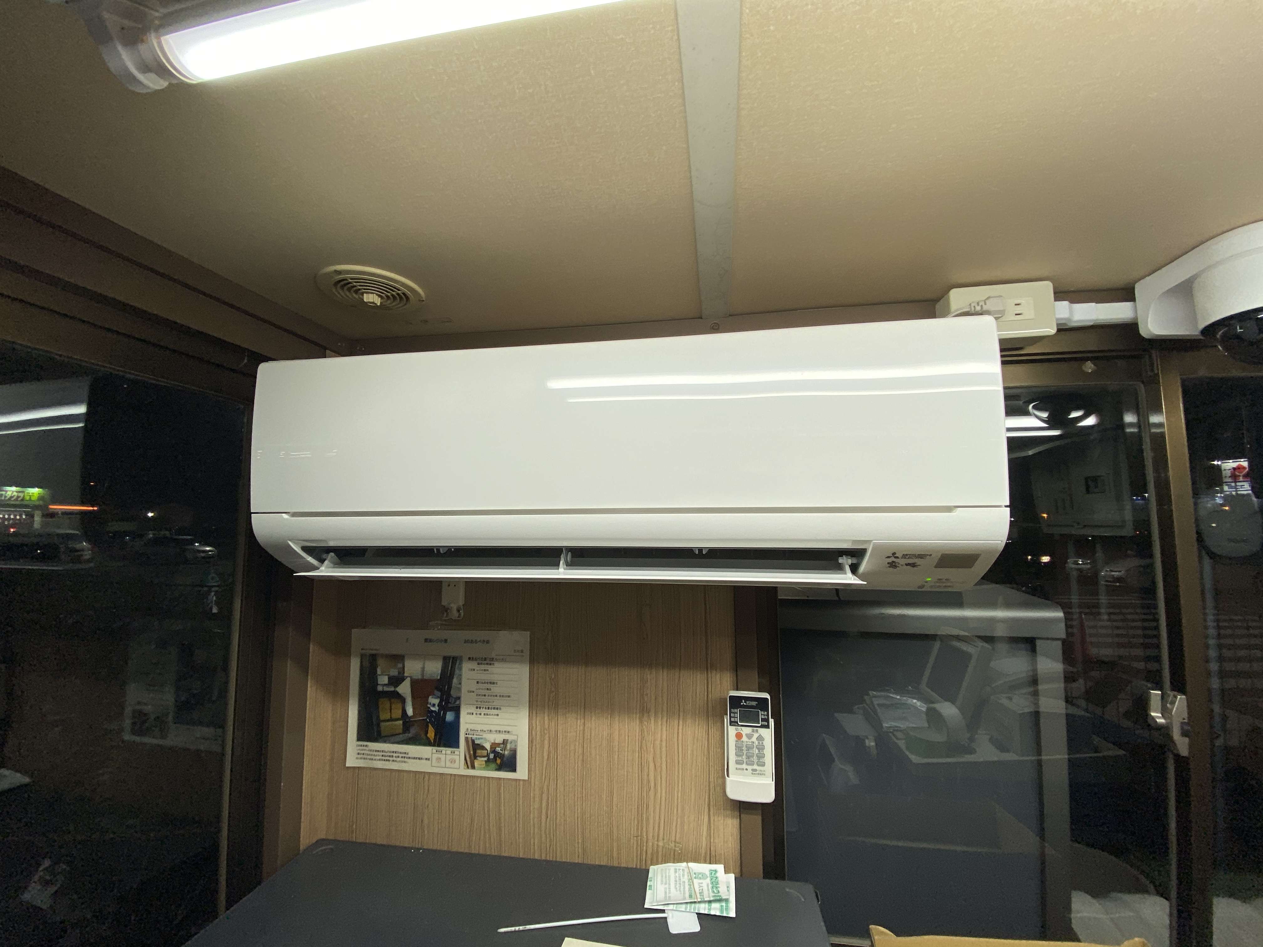 宮城県大崎市古川 店舗レジプレハブ小屋 三菱電機ルームエアコン取付工事