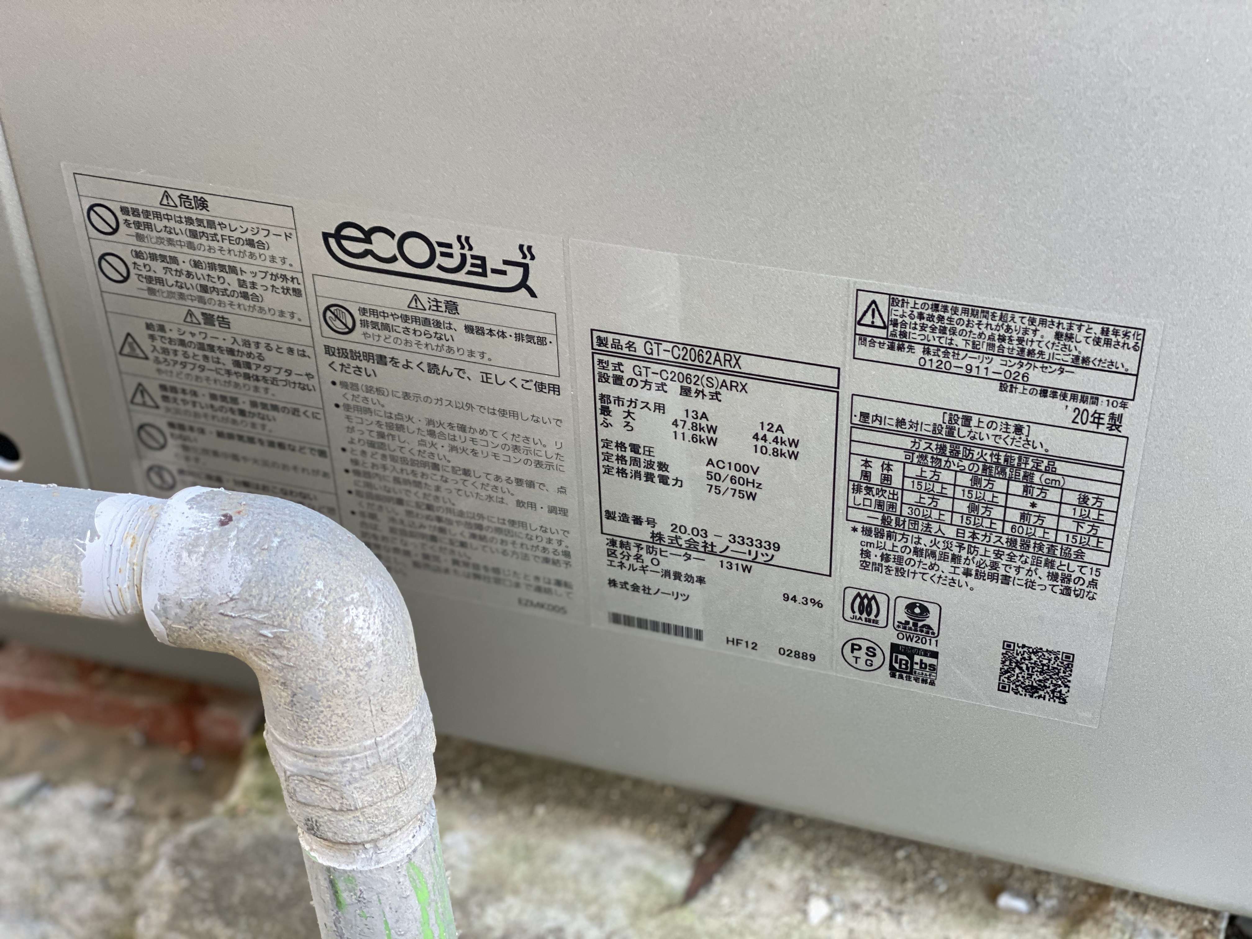 ノーリツ製 エコジョーズ ガスふろ給湯器