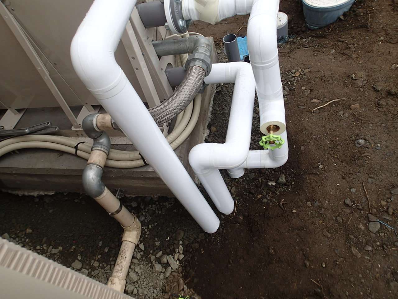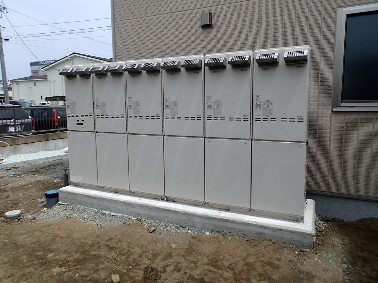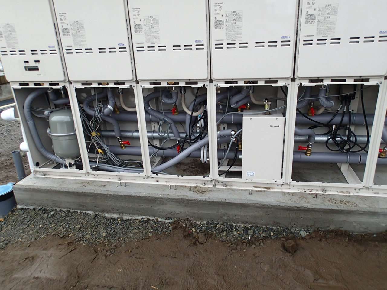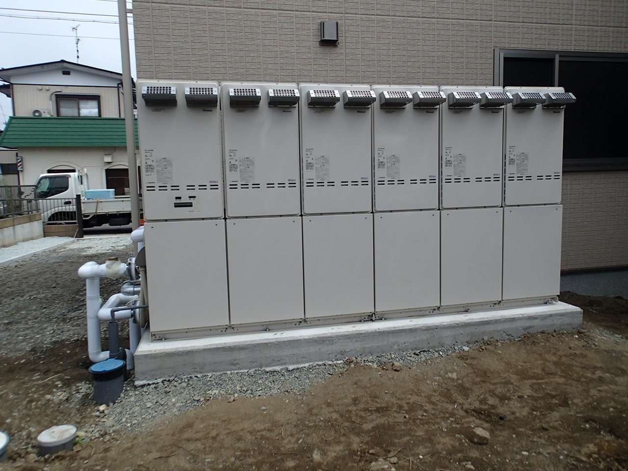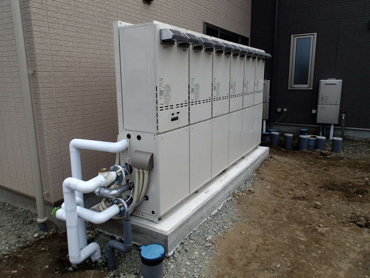 宮城県石巻市大街道東 新築老人福祉施設建築現場 リンナイ 50号マルチ給湯器新規取付工事
