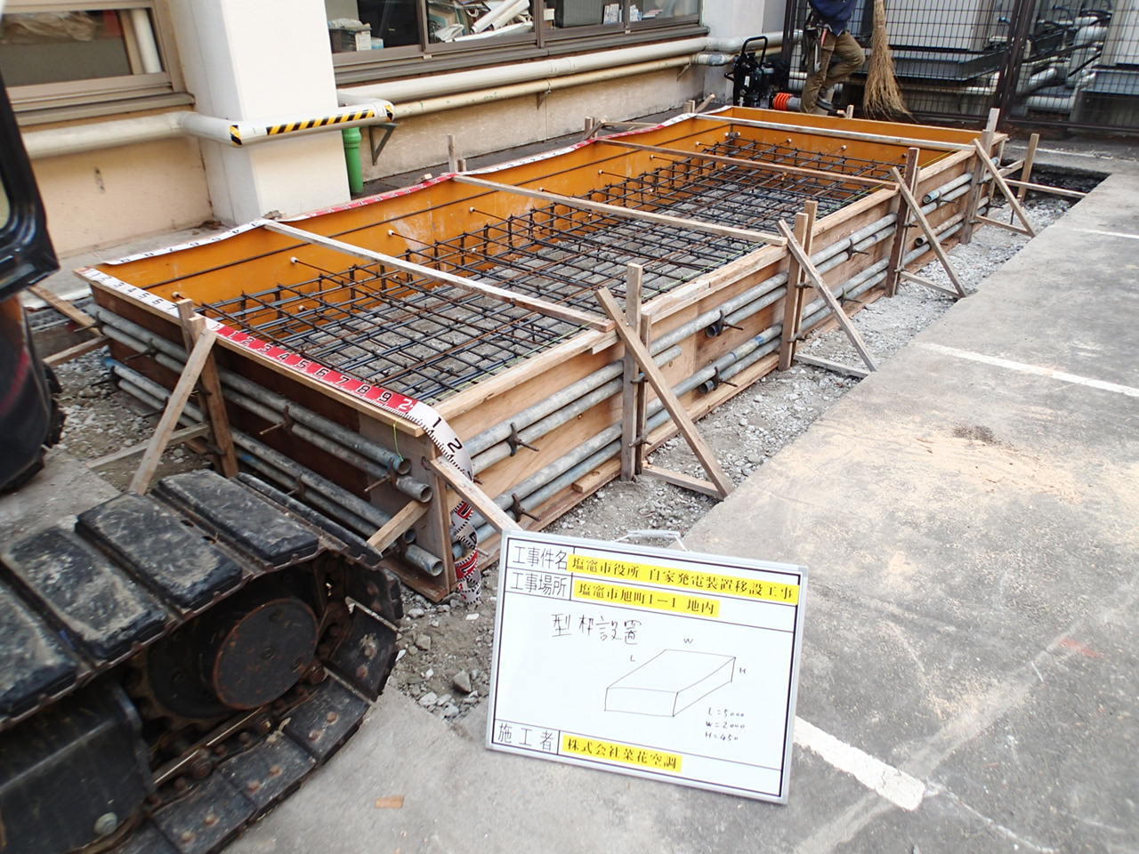 公共施設 施工事例 公共工事 宮城県塩竈市 塩竈市役所様本庁地内 非常用発電設備設置に伴う基礎工事 1.非常用発電設備設置のに伴う基礎工事。2.砕石敷設転圧工事。3.鉄筋配筋工事。4.型枠組立て工事。5.継続中工事。 前の施工事例 マンション・アパート 宮城県仙台市青葉区 グランドメゾン青葉のまちウエスト ルームエアコン新規取付工事 次の施工事例 マンション・アパート 宮城県仙台市泉区八乙女 八乙女パークホームズ Rinnai リンナイ ビルトインコンロ交換工事