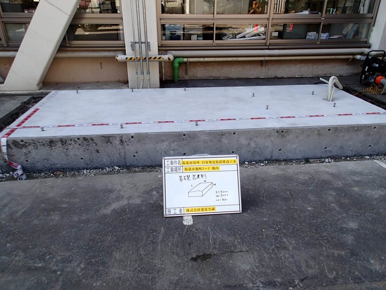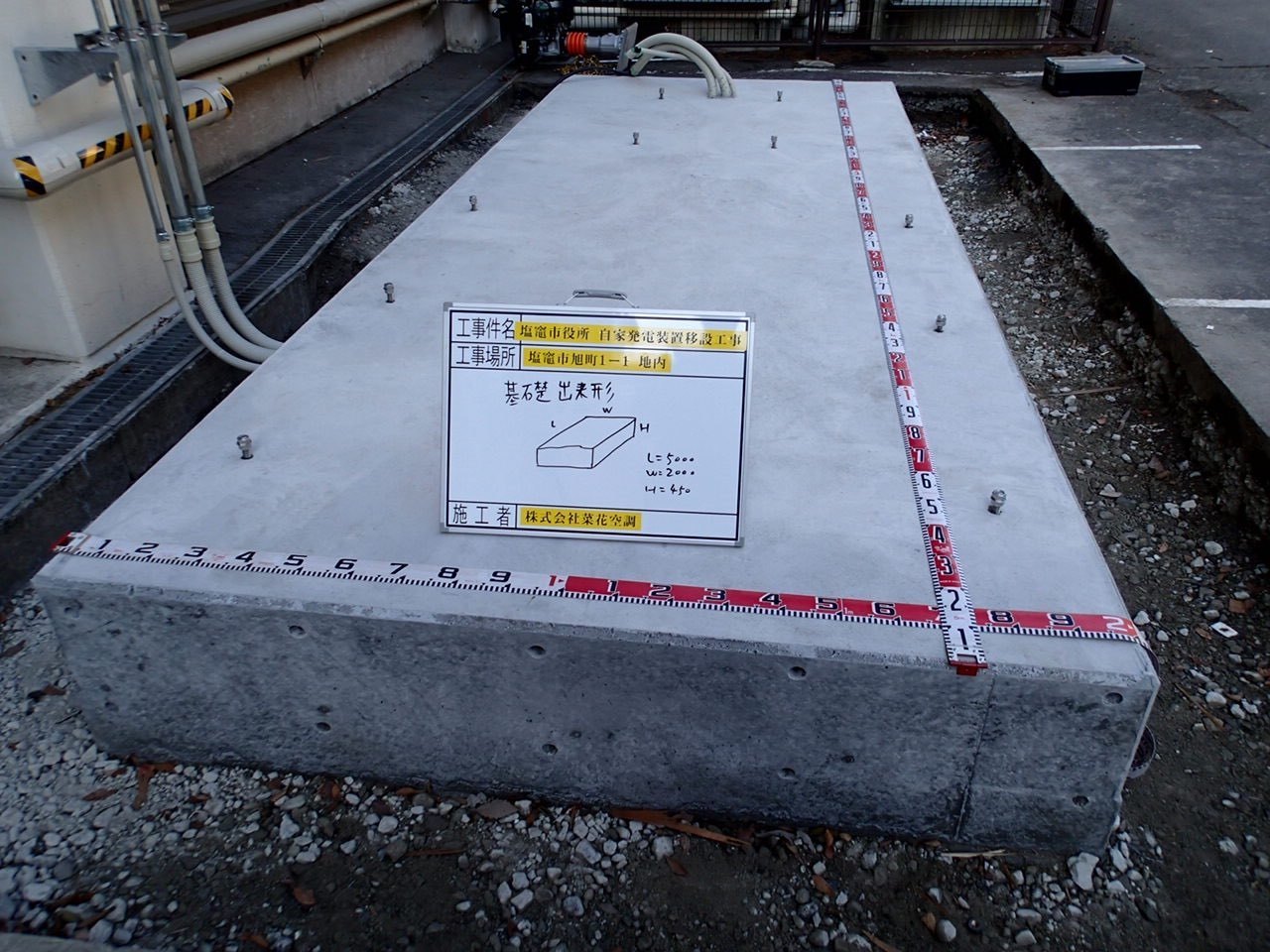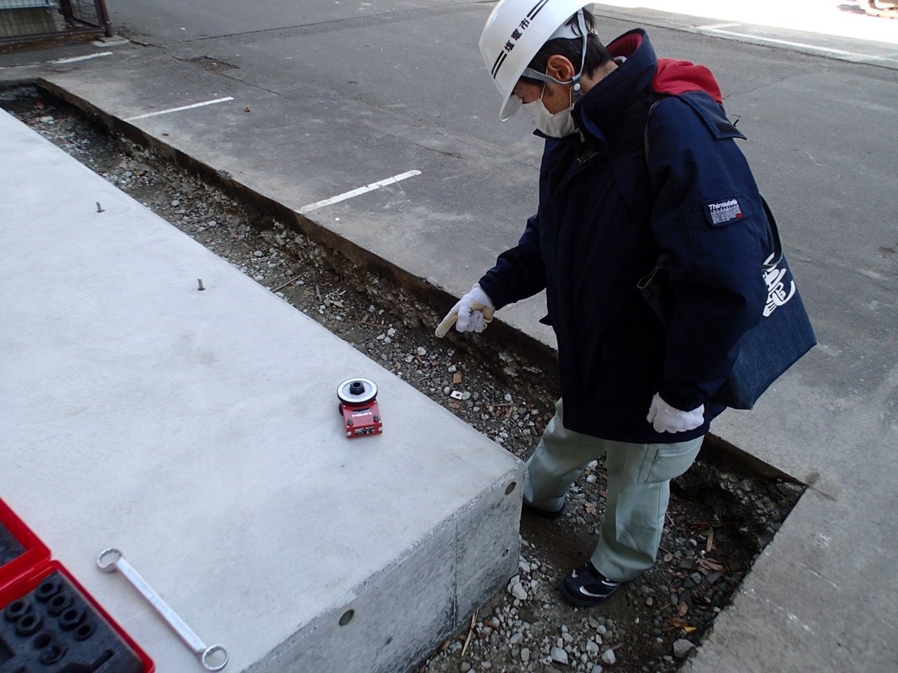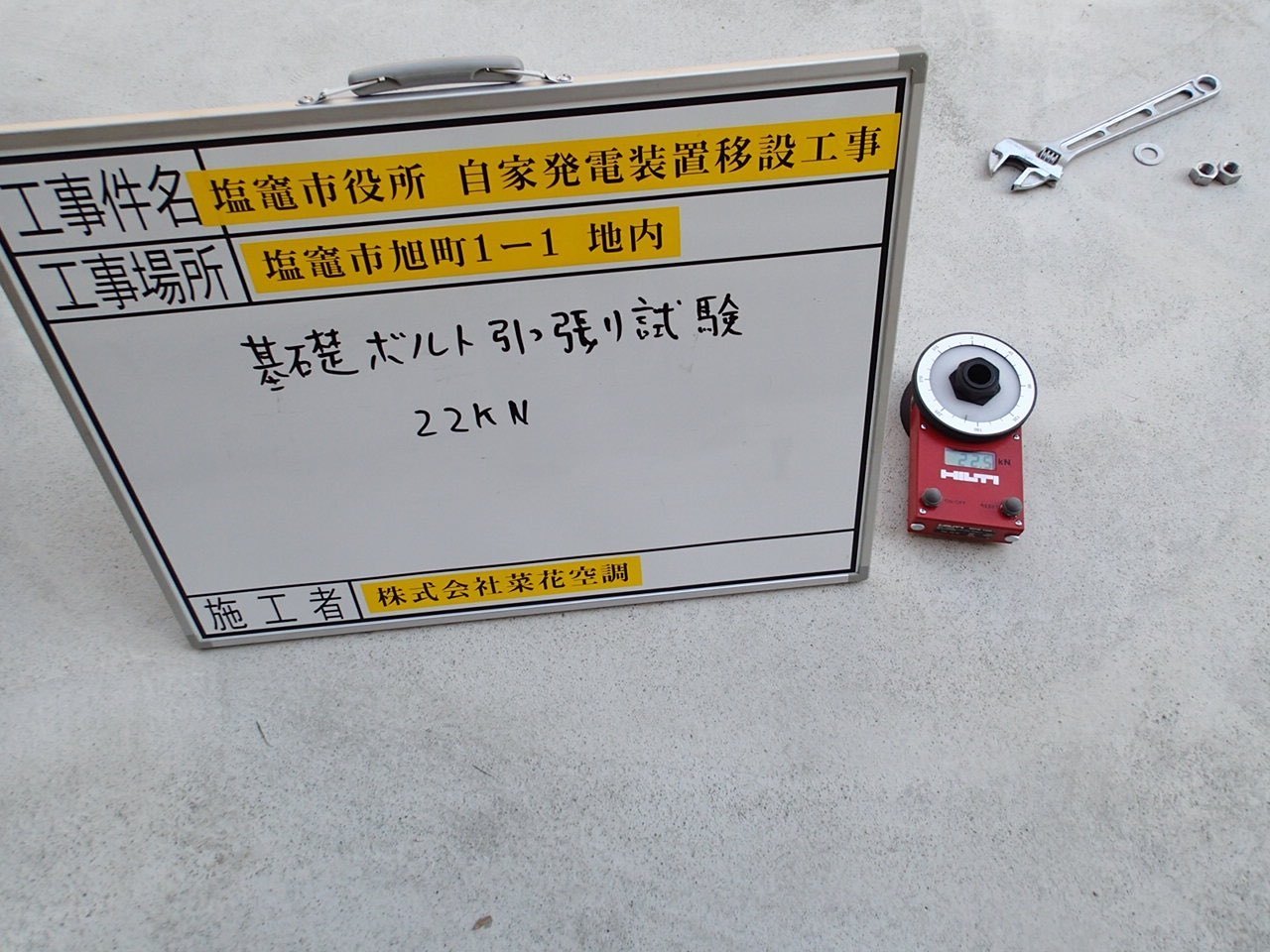 宮城県塩竈市 塩竈市役所本庁様 非常発電設備移設工事・ケミカルアンカー引張り試験作業