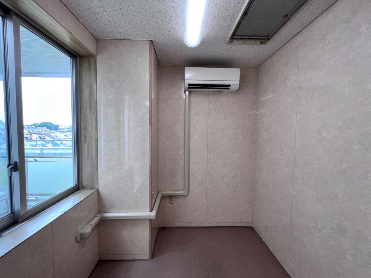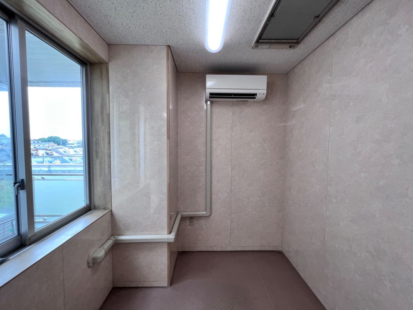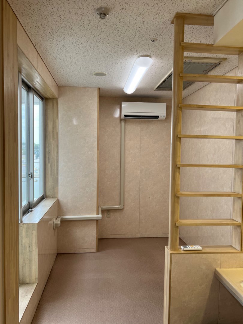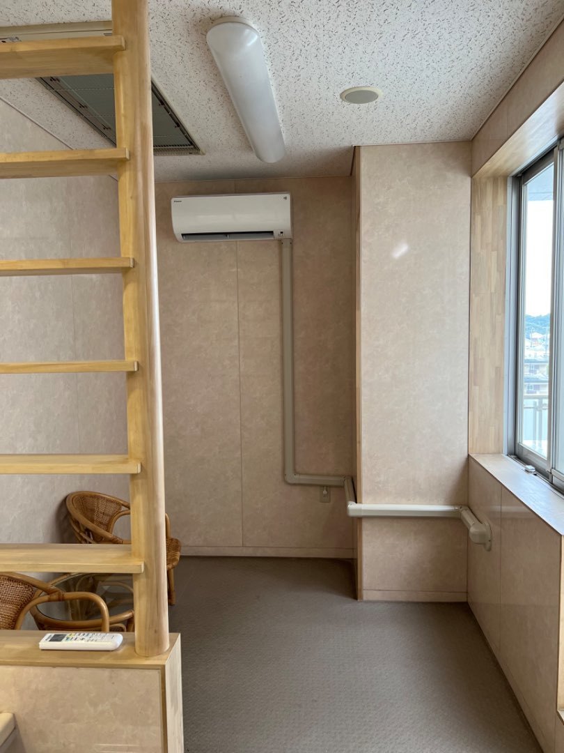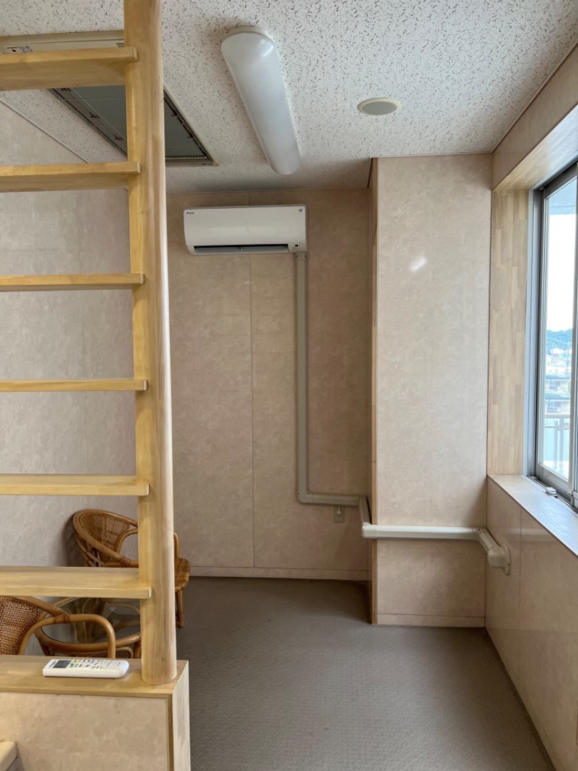 1.特別養護老人ホーム施設様 浴室脱衣室への新規ルームエアコン新規取付工事。