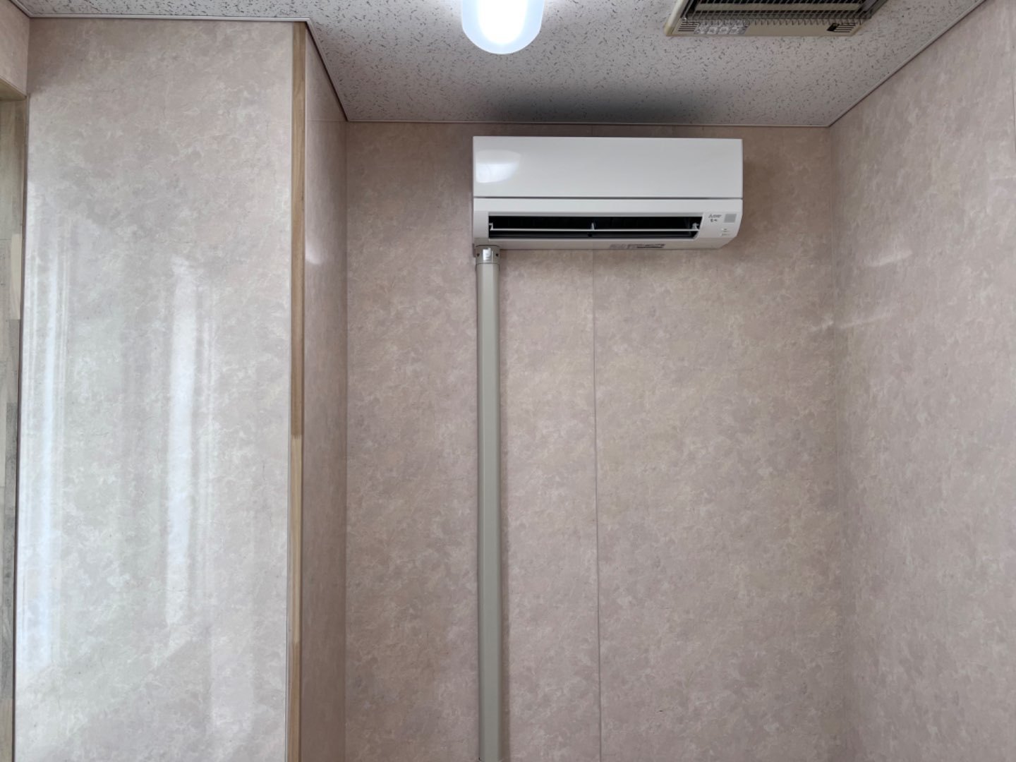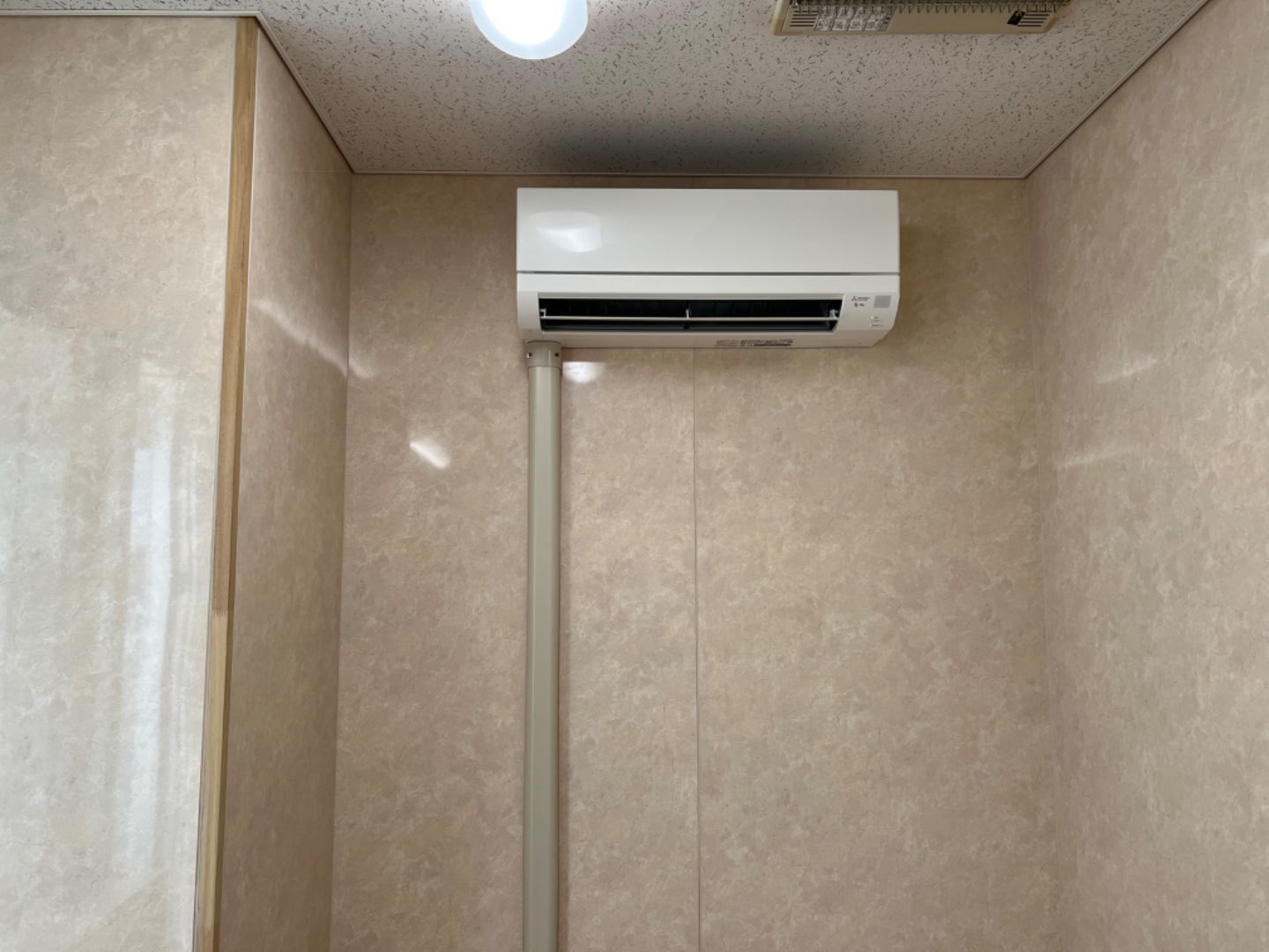 宮城県仙台市泉区 特別養護老人ホーム施設様 浴室脱衣室 三菱電機 霧ヶ峰 ルームエアコン新規取付工事