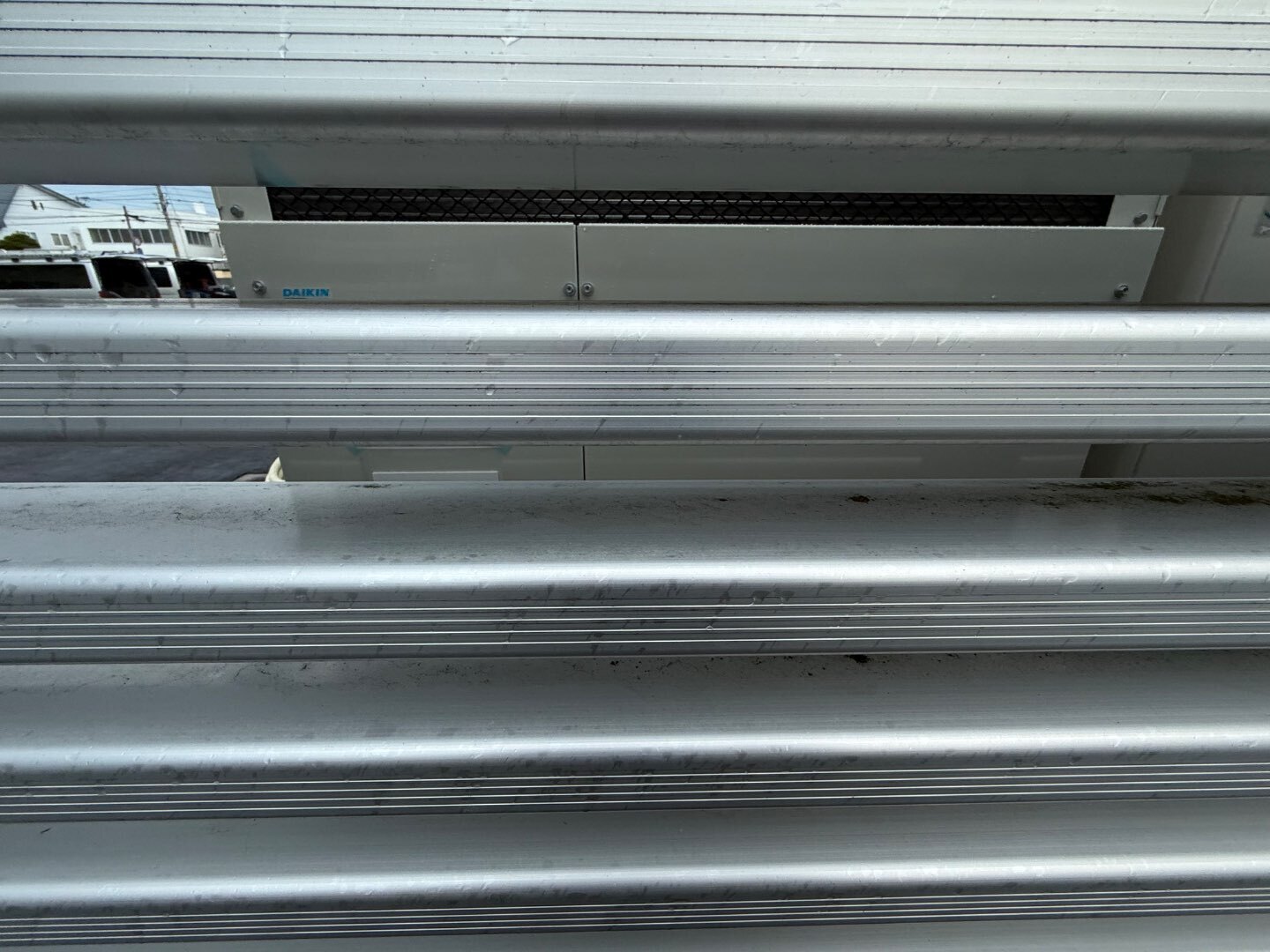 室外機周囲には、アルミ製ルーバーを設置し、