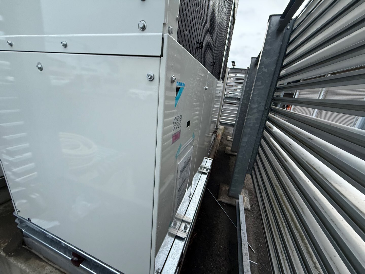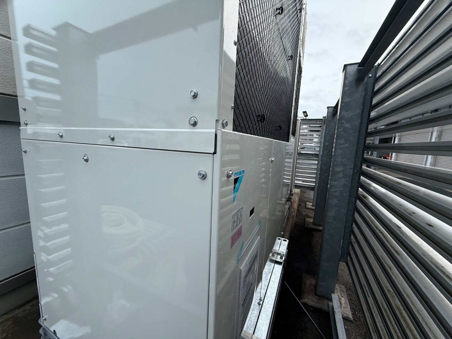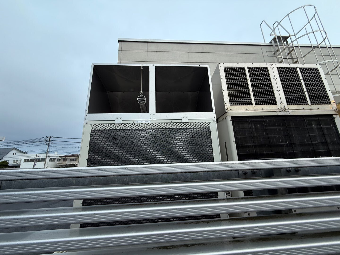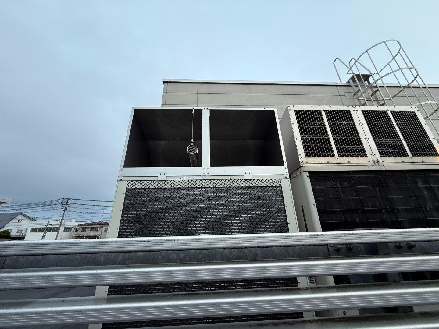 機器を保護するだけでなく、施設全体の景観を損なわないよう、建物デザインとの調和も重視した施工としています。