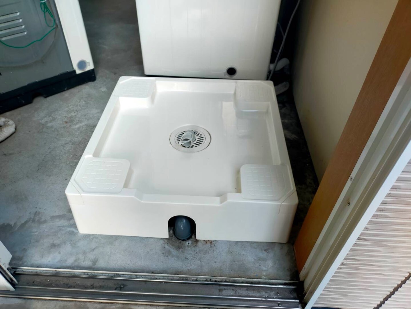 既存の設置状況や床面の状態、排水位置を現地にて詳細に確認し、洗濯機のサイズ・重量・振動を考慮した上で、適切な洗濯パンを選定。水平レベルを正確に調整し、運転時の振動や偏荷重によるズレ・排水不良が発生しにくいよう、確実な据付を行いました。