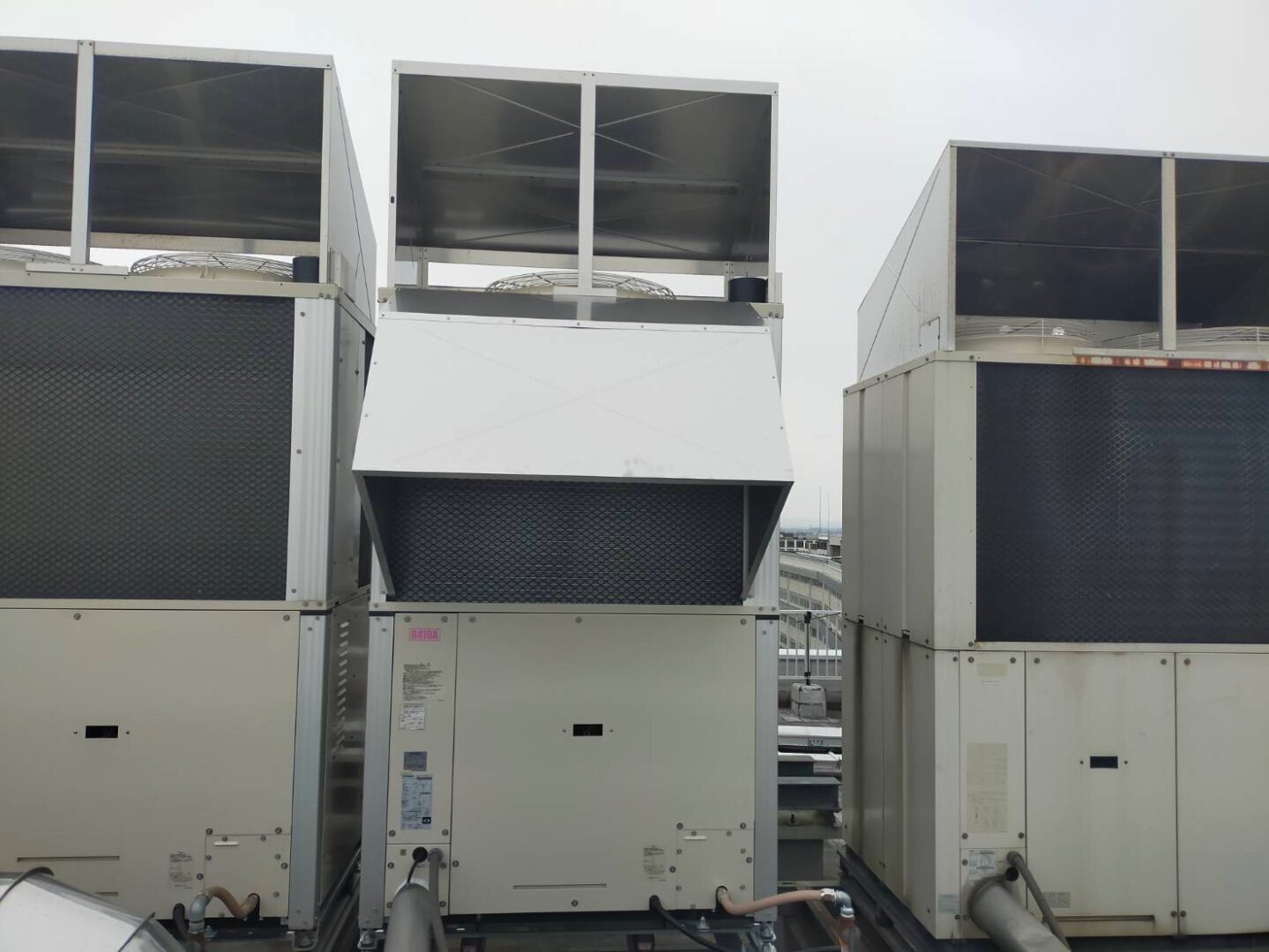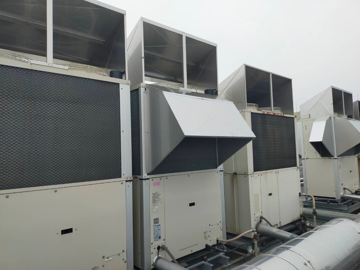 屋上に設置された複数のGHP室外機を対象とした更新工事であり、既存設備の状況確認から搬入計画、撤去、新規機器据付、接続、試運転確認まで、一連の工程を丁寧に進めております。