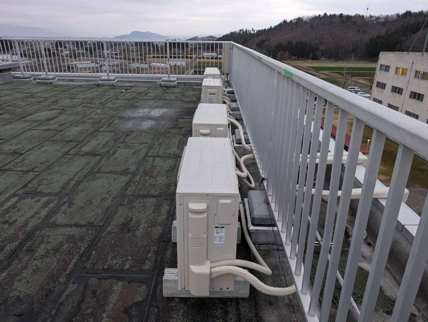 高所での空調工事は、見た目以上に注意点が多くあります。