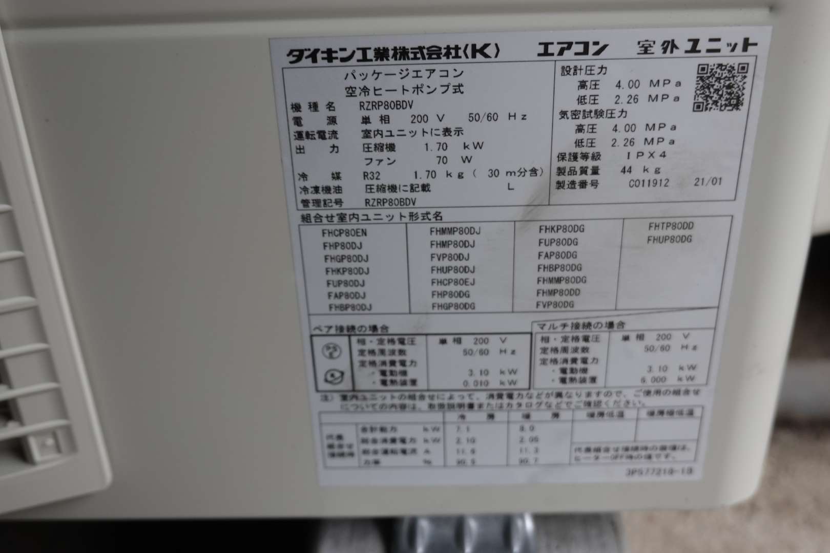 3.新規機器情報 ダイキン工業 室内機 FHCP80EN 室外機 RZRP80BDV